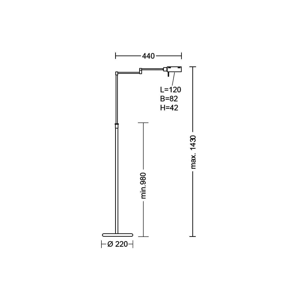 - Höhenverstellbarer Teleskopfuß und ausrichtbarer Kopf