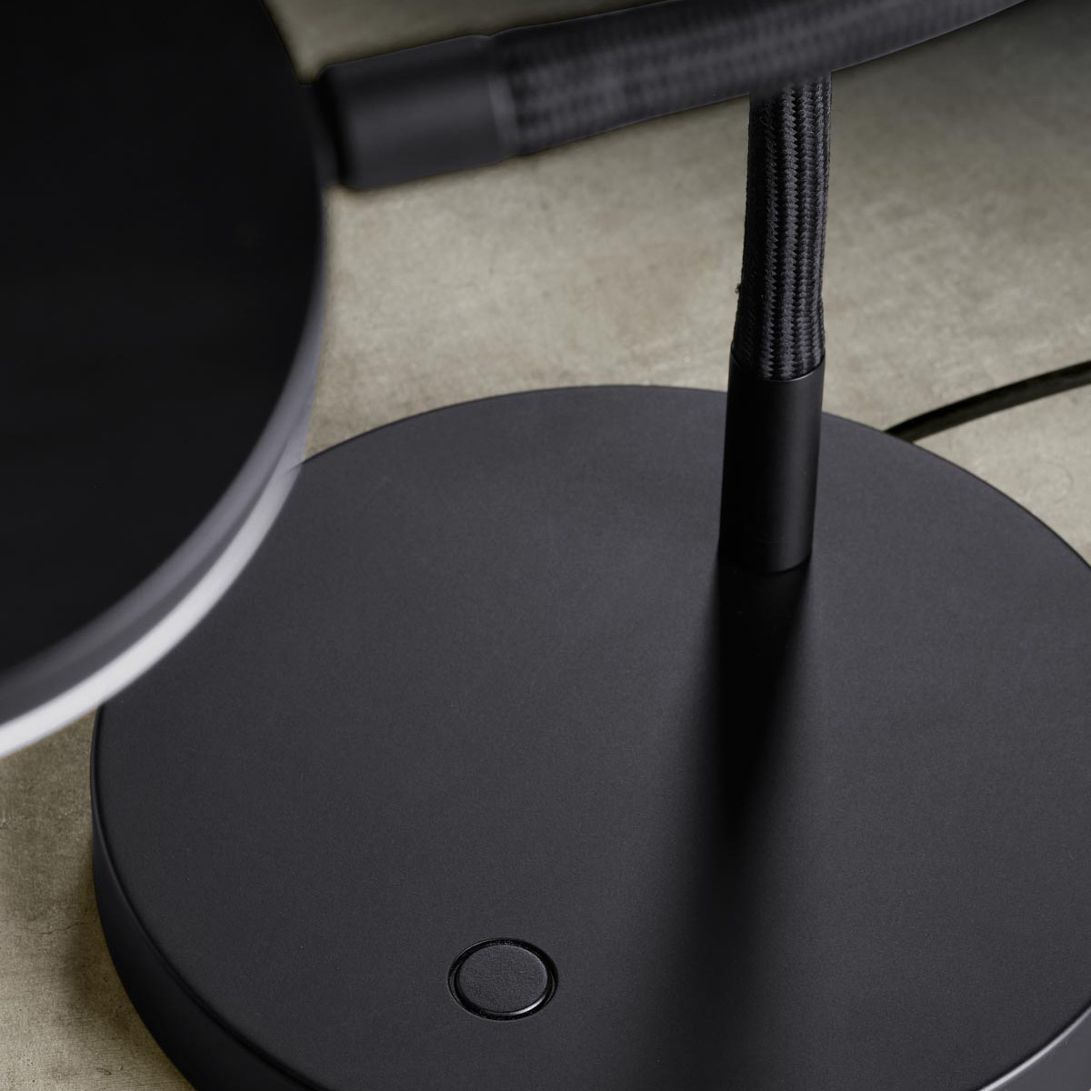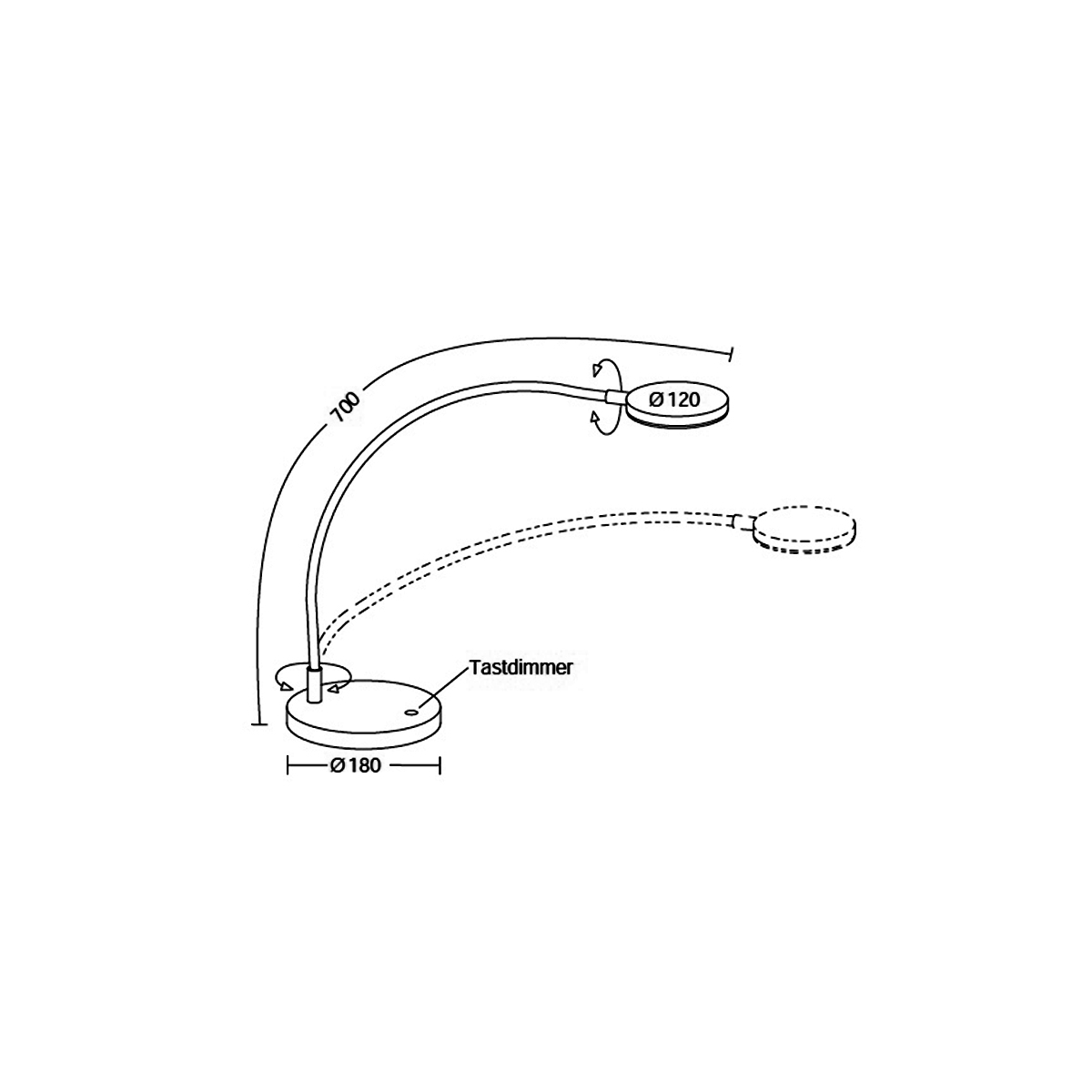- Tastdimmer mittig auf dem Sockel integriert