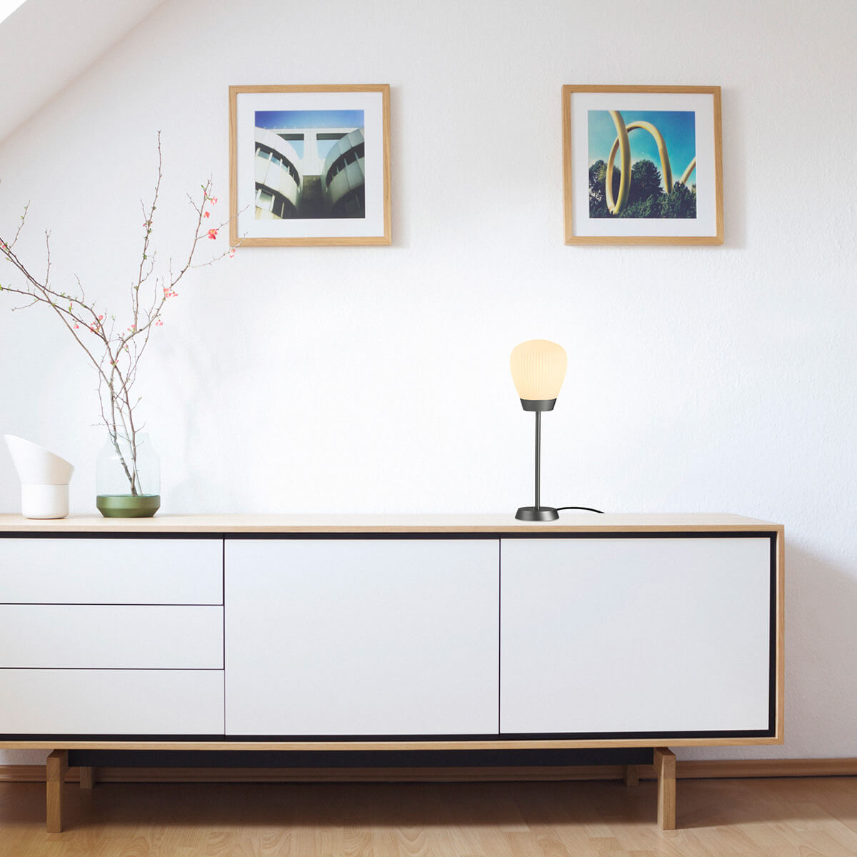 Der formschöne Metallfuß ist in verschiedenen Farben erhältlich und ermöglicht eine perfekte Abstimmung auf Ihr Interieur. Ob als dekoratives Highlight auf dem Sideboard, als elegante Ergänzung auf dem Beistelltisch oder als stimmungsvolle Lichtquelle im Schlafzimmer - die Plissee T1 Tischleuchte fügt sich harmonisch in die unterschiedlichsten Raumkonzepte ein.
