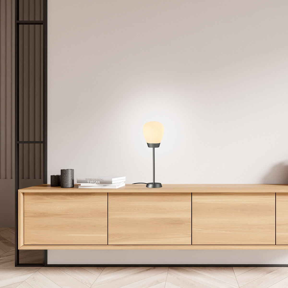 Die Plissee T1 Tischleuchte von Holtkötter verbindet anspruchsvolles Design mit hochwertiger Lichttechnik und setzt stilvolle Akzente in Ihrem Wohnraum. Der plissierte Schirm aus mundgeblasenem Opalglas sorgt für eine gleichmäßige, blendfreie Lichtverteilung und schafft eine warme, einladende Atmosphäre.