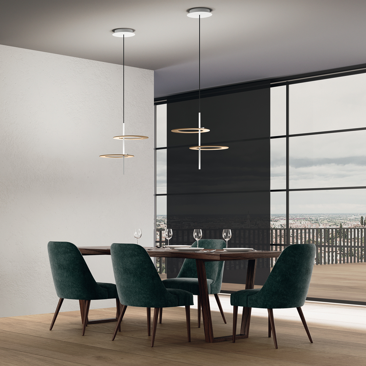 - Minimalistische Pendelleuchte vereint mit geometrischen Formen
