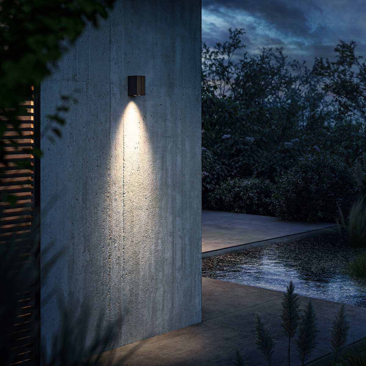 Die Cut Down ist die kompaktere Schwester der Cut-Serie – und überzeugt trotz ihrer reduzierten Größe mit einem starken Auftritt. Ihr nach unten gerichtetes Licht sorgt für eine effektvolle, aber blendfreie Ausleuchtung von Fassaden, Eingangsbereichen oder Terrassenwänden. Dabei entsteht ein eleganter Lichtkegel, der gezielt Akzente setzt und zugleich für Orientierung und Sicherheit sorgt.