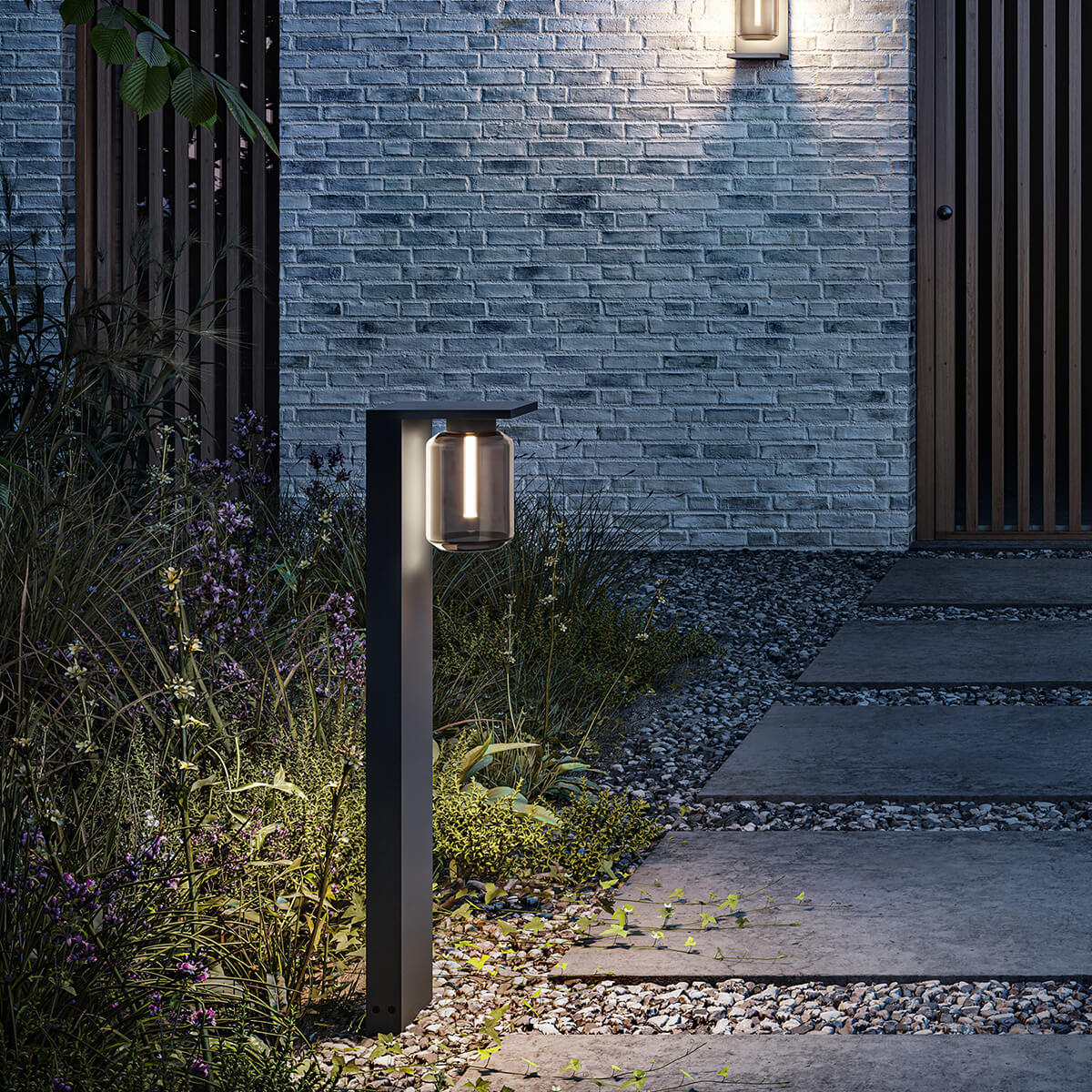 - Modern-schöne Pollerlampe mit geblasenem Glasschirm