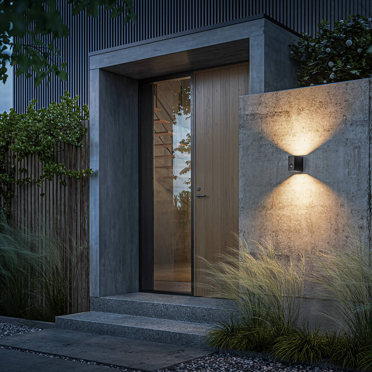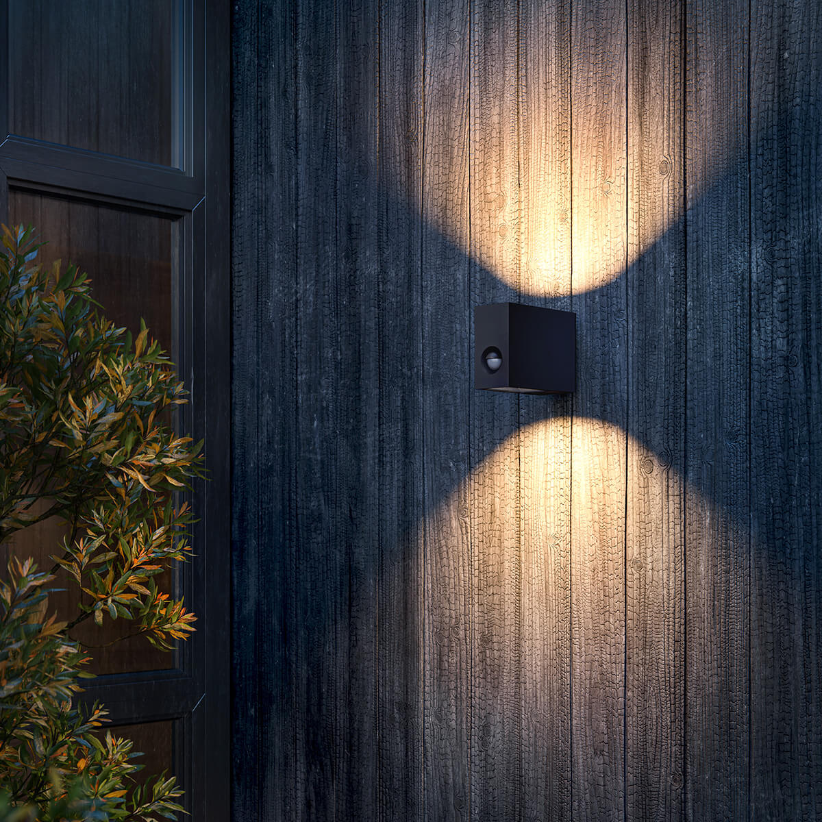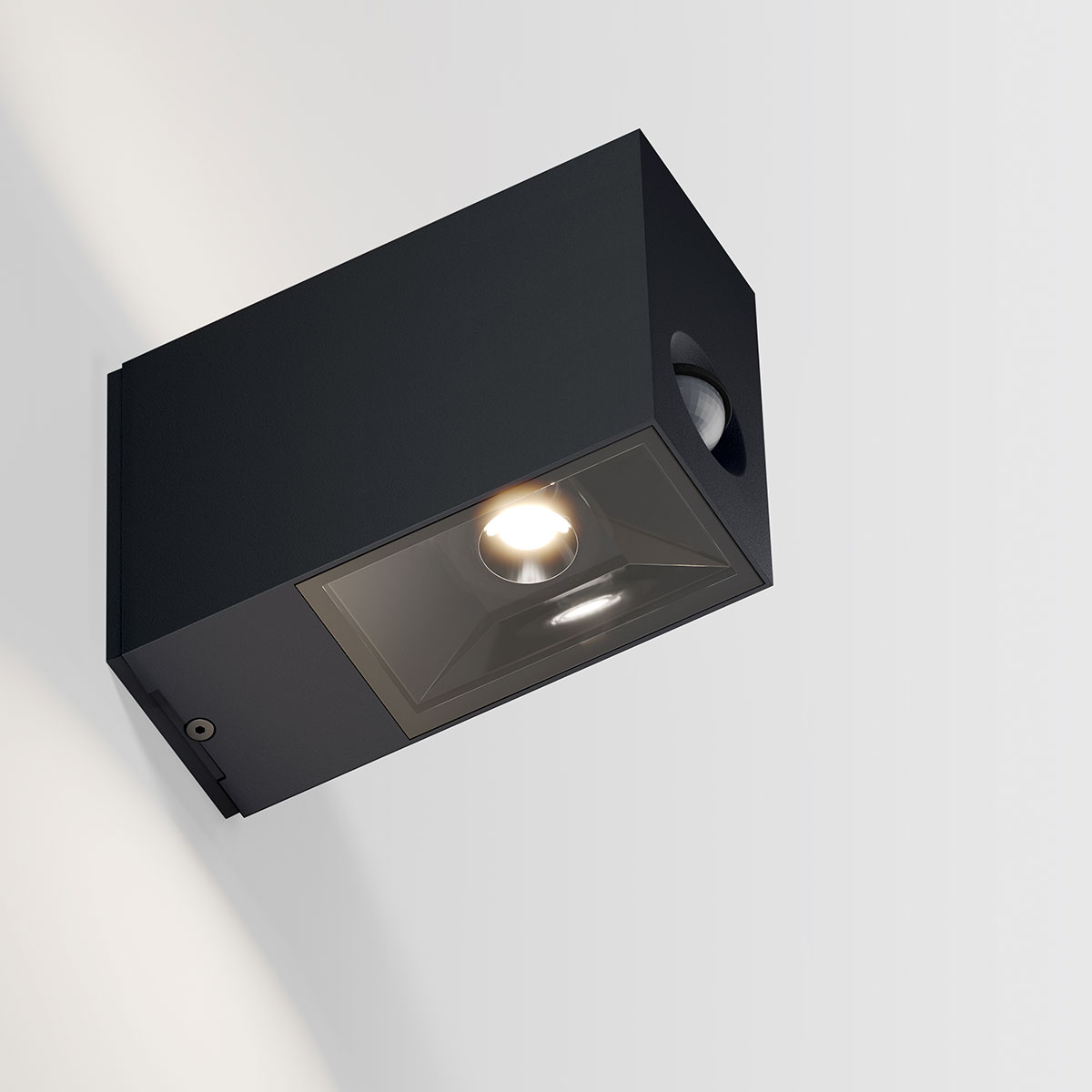 Mit ihrem markanten Up- & Downlight-Effekt setzt Eye Control gezielte Lichtakzente an der Fassade – atmosphärisch, modern und funktional zugleich. Das integrierte Bewegungssensorsystem reagiert zuverlässig auf jede Bewegung in der Umgebung und sorgt damit automatisch für Orientierung und ein sicheres Gefühl – ob auf dem Weg zur Haustür oder im Gartenbereich.