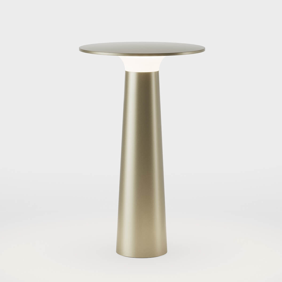 Gefertigt aus hochwertigem Aluminiumguss und ausgestattet mit der Schutzart IP65, trotzt die Tisch-Akkulampe Wind und Wetter. Ihre schlanke Silhouette, die in zehn edlen Farbvarianten wie Brass, Chrome oder Dark Chrome erhältlich ist, macht sie zum stilvollen Begleiter für unterschiedlichste Umgebungen – von der Designlounge über das Restaurant bis zum privaten Terrassendinner.