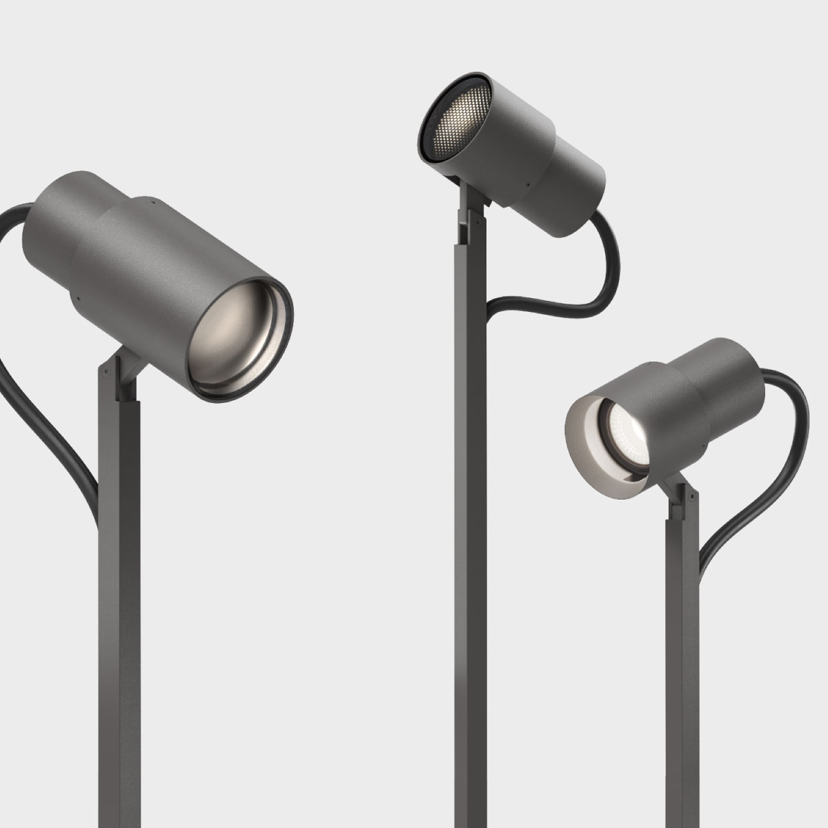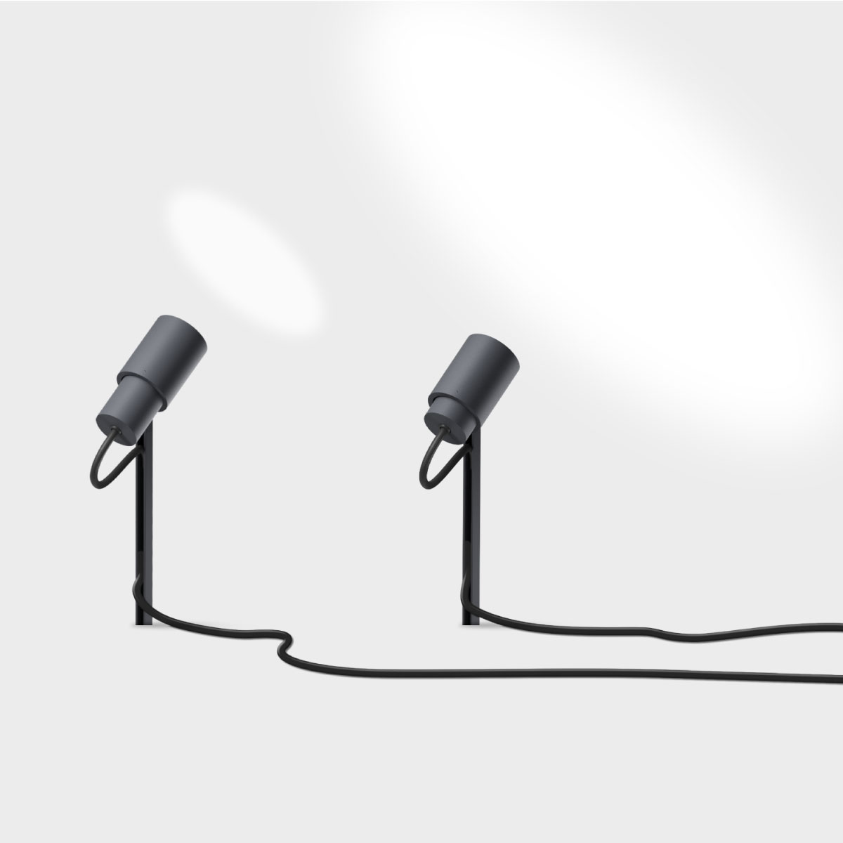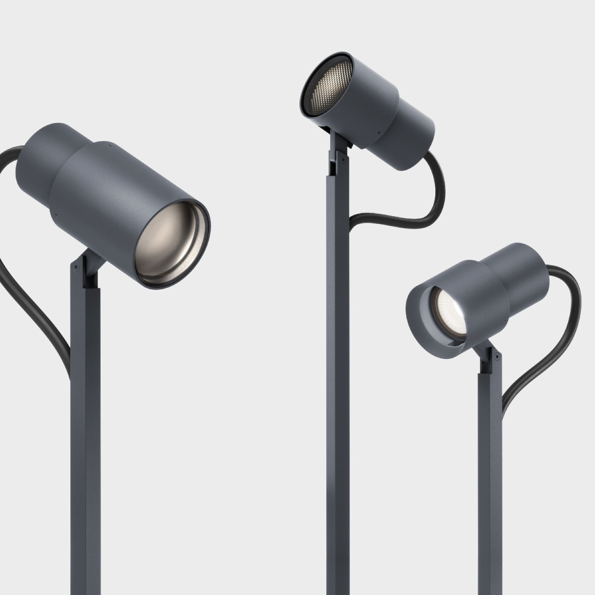 IP44.DE Piek Cover L, antracite (anthrazit), die Abbildung zeigt alle drei Cover L, S und C (v.l.n.r.) an drei Spießstrahlern (Strahler nicht im Lieferumfang inbegriffen)
