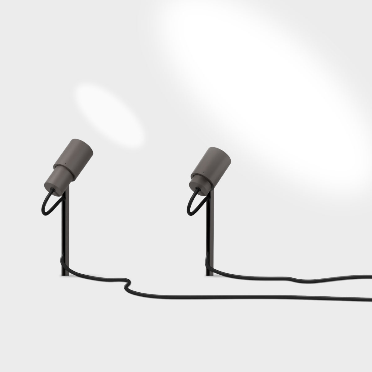 IP44.DE Piek Cover L, cool brown (braun), die Abbildung zeigt das Cover L angebracht an einen Spießstrahler (Strahler nicht im Lieferumfang inbegriffen)