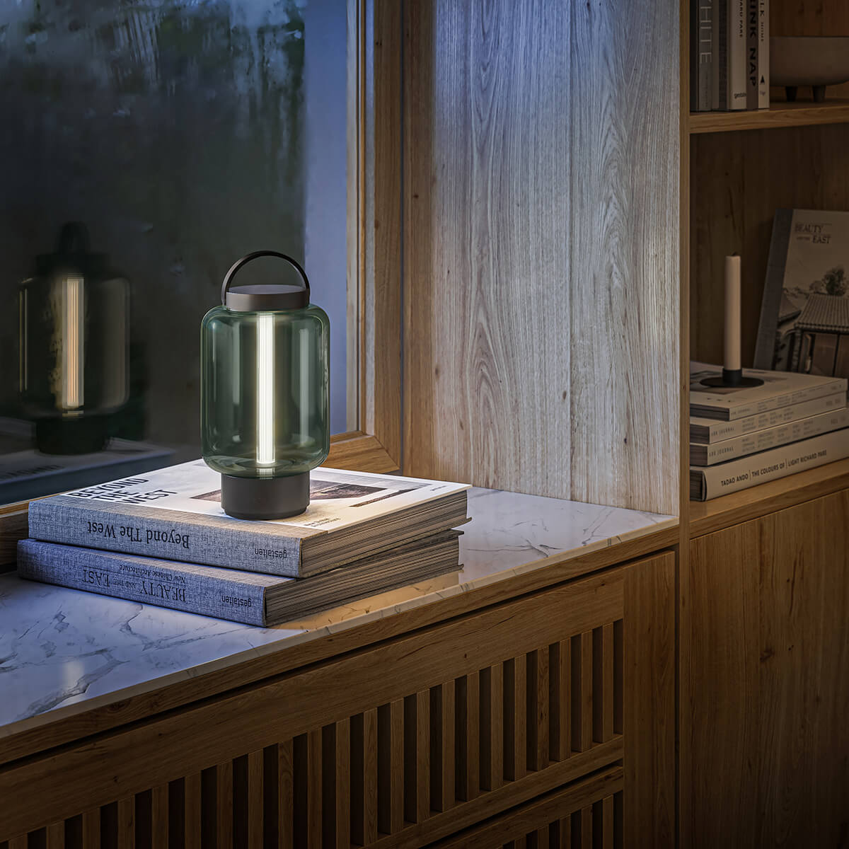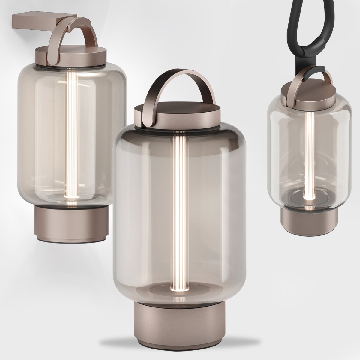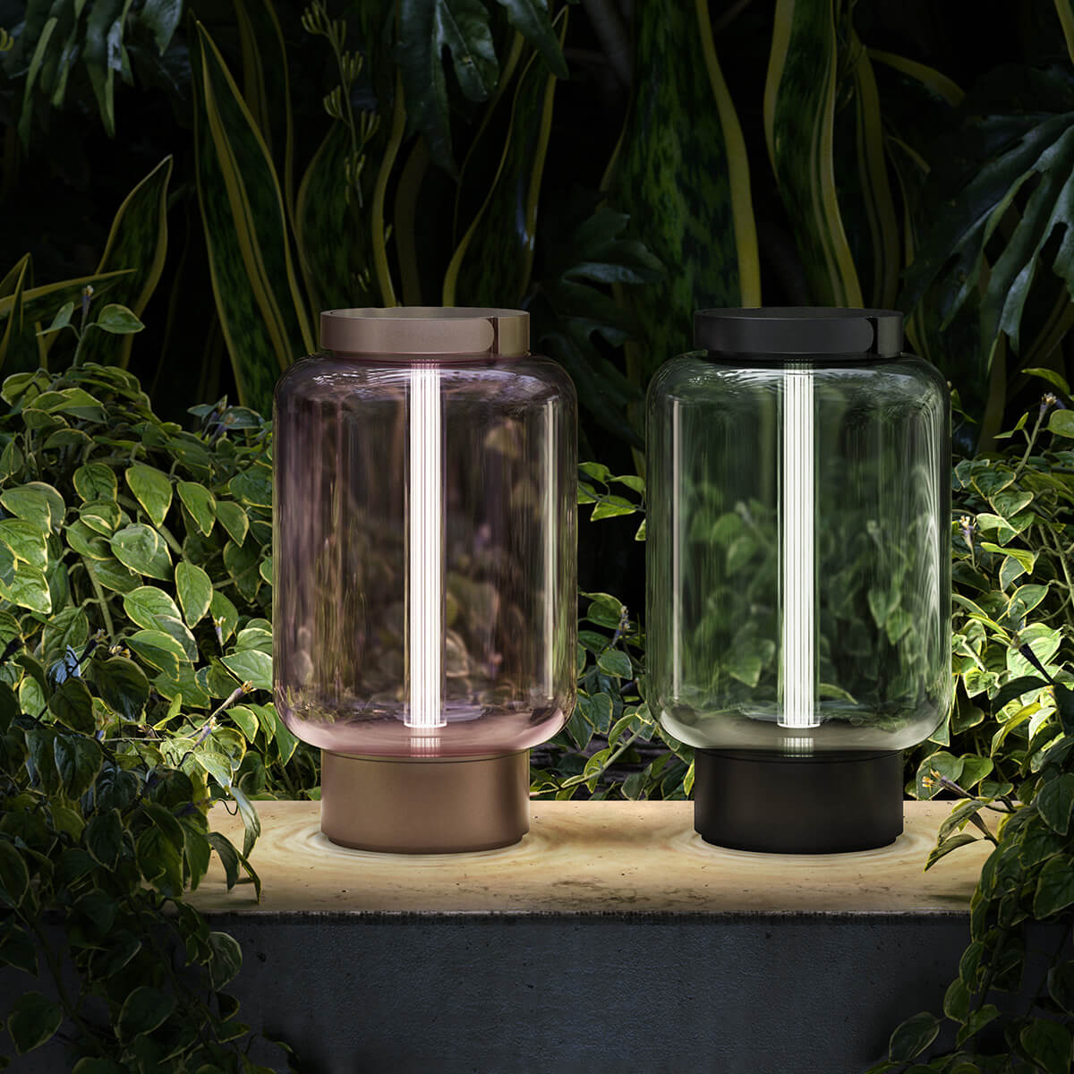 Erhältlich ist die Tisch-Akkulampe in den Gehäusefarben Jet Black und Bright Bronze, kombiniert mit einem getönten Glaskörper in warmem Amber, dezentem Grün oder zartem Rosé. Stilvoll und dekorativ, bieten die Farbvarianten für jeden Geschmack die passende Lösung und sorgen dafür, dass sich die LED-Laterne nahtlos in jede Umgebung einfügt, egal ob im Wohnzimmer, auf der Terrasse oder dem Balkon.