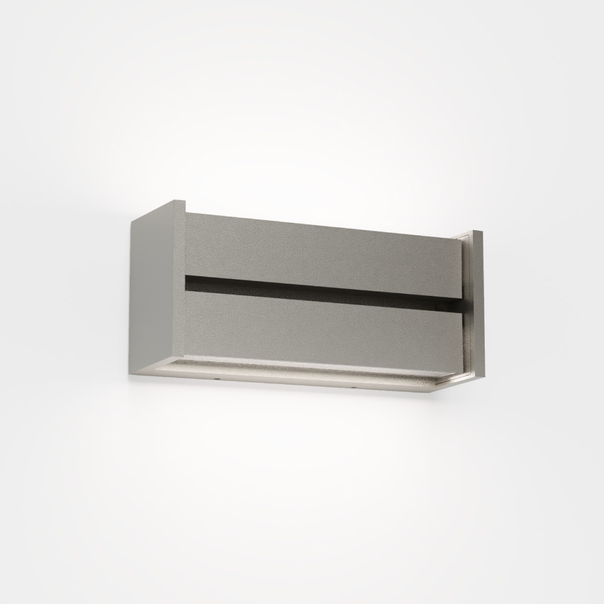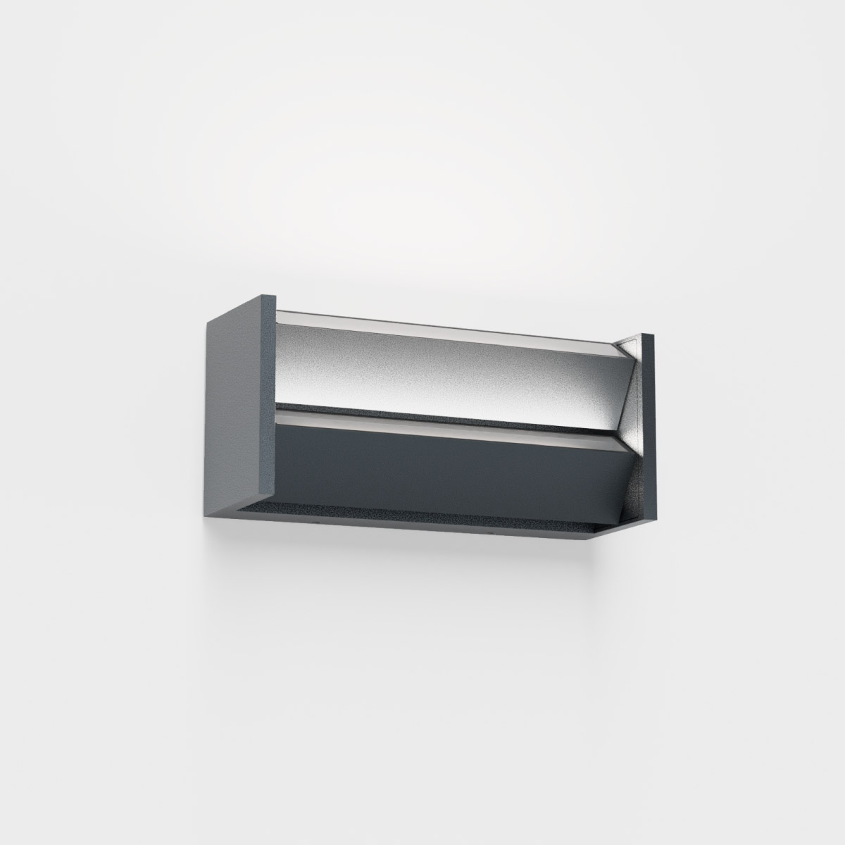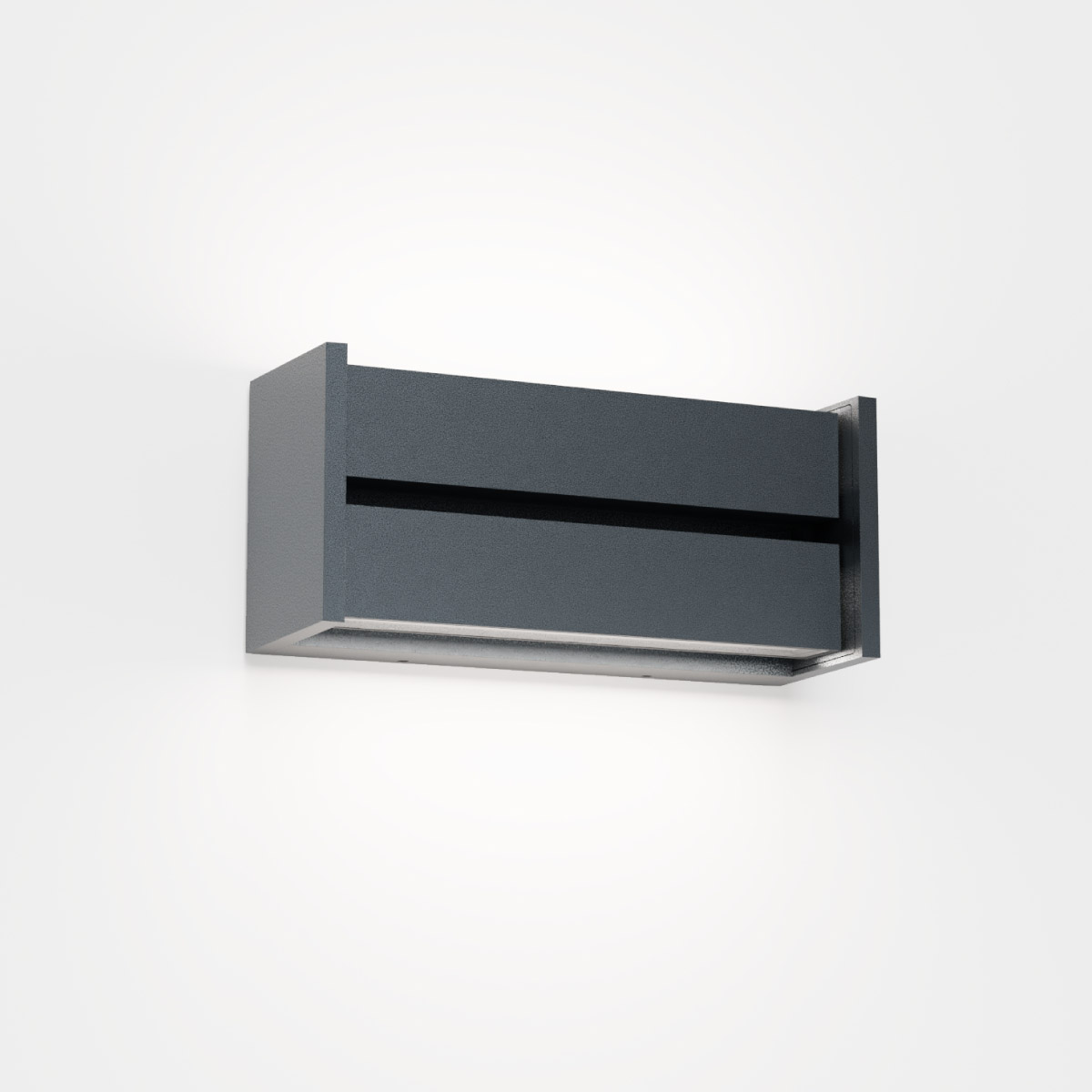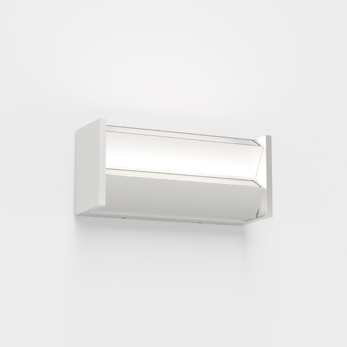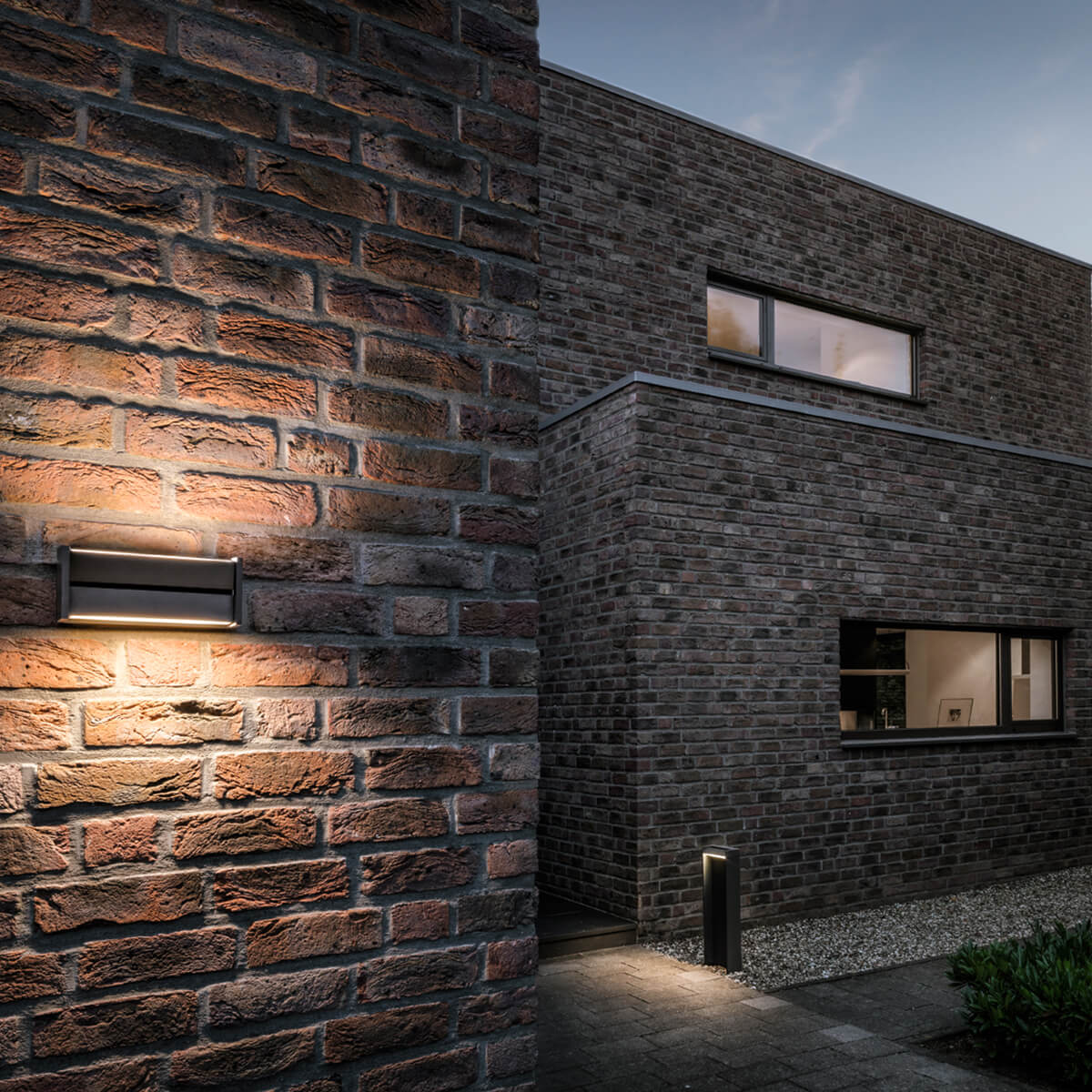Mit der Slat Wand- und Deckenleuchte von IP44.DE lassen sich Eingänge und Fassaden raffiniert gestalten. Die nach funktionalen Gesichtspunkten gestaltete Außenleuchte trägt zwei schlanke Lichtlamellen, die unabhängig voneinander um 240° gedreht werden können. Als Wallwasher konzipiert, erzeugen sie ein breit gestreutes Licht von brillanter, warmweißer Farbigkeit. Je nach Ausrichtung der Lamellen ist eine direkte oder indirekte Beleuchtung möglich. Weisen beide Elemente in entgegengesetzte Richtung, lässt sich die Slat auch als klassisches Up- und Downlight nutzen. Auf diese Weise lassen sich mit der Leuchte unterschiedliche Lichtstimmungen erzeugen, die immer wieder variiert werden können – ganz nach Belieben und ohne lästige Montagearbeiten. Installiert werden kann die IP44.DE Slat sowohl als Wandleuchte als auch Deckenleuchte, was ihre Einsatzflexibilität um ein weiteres Mal steigert. Ein echtes Lichtwerkzeug für jede Front!