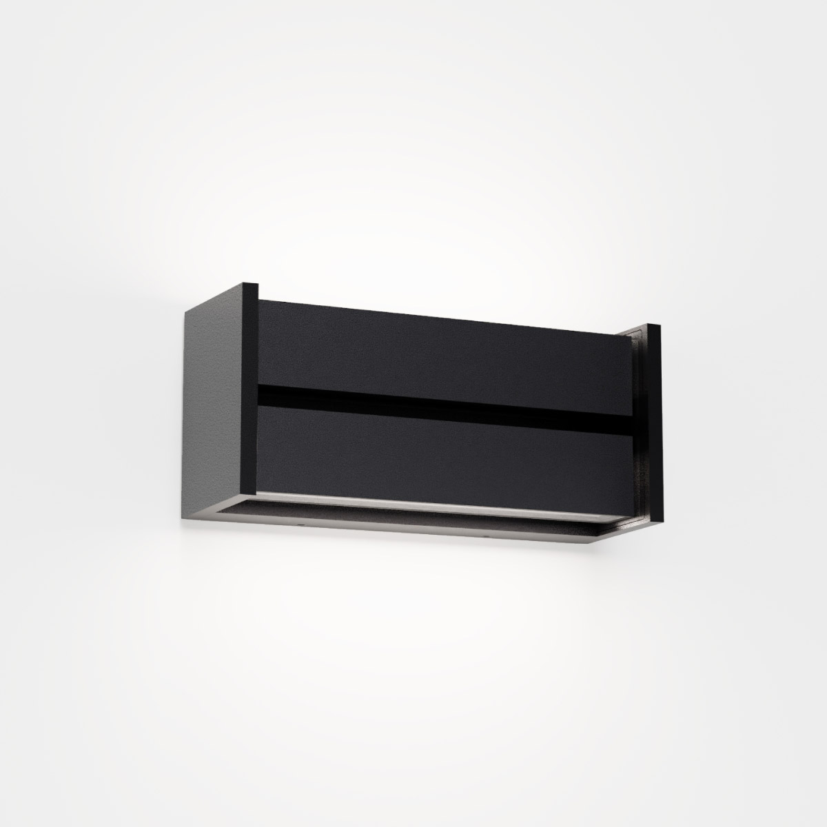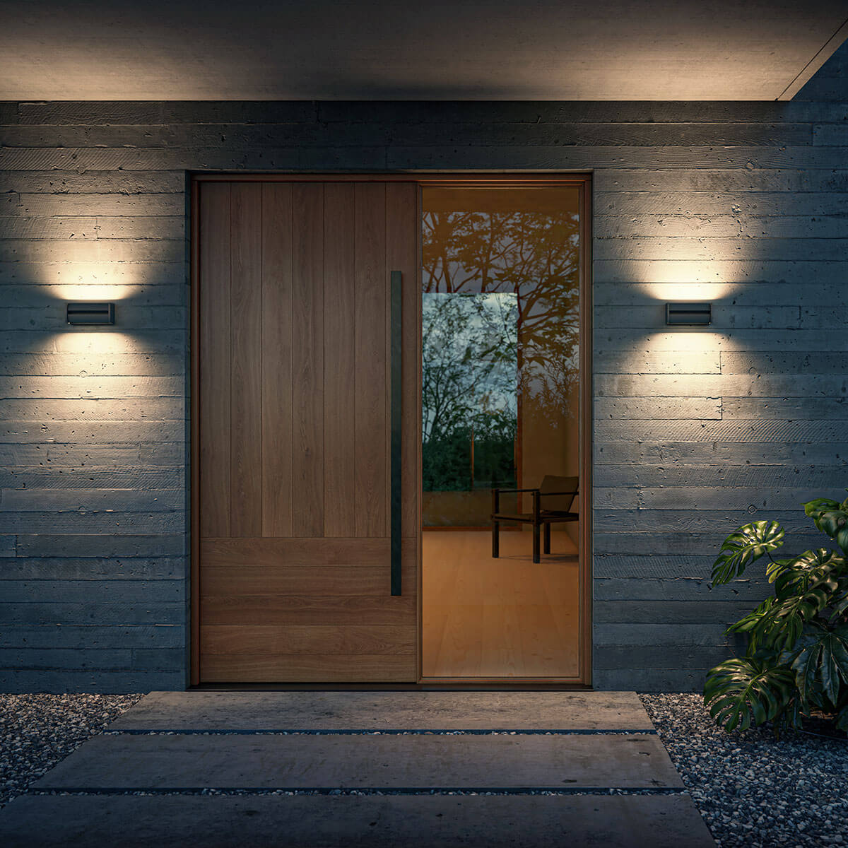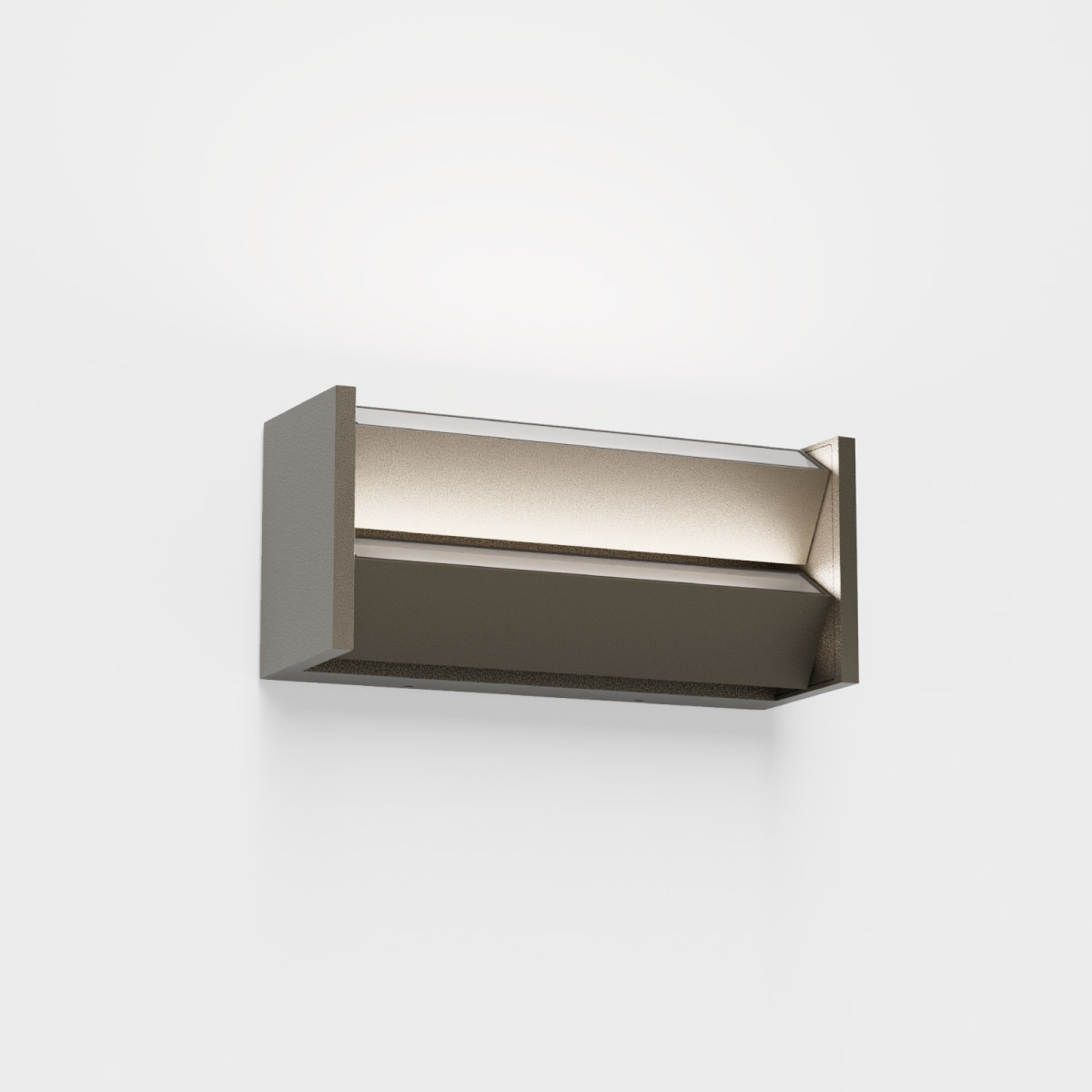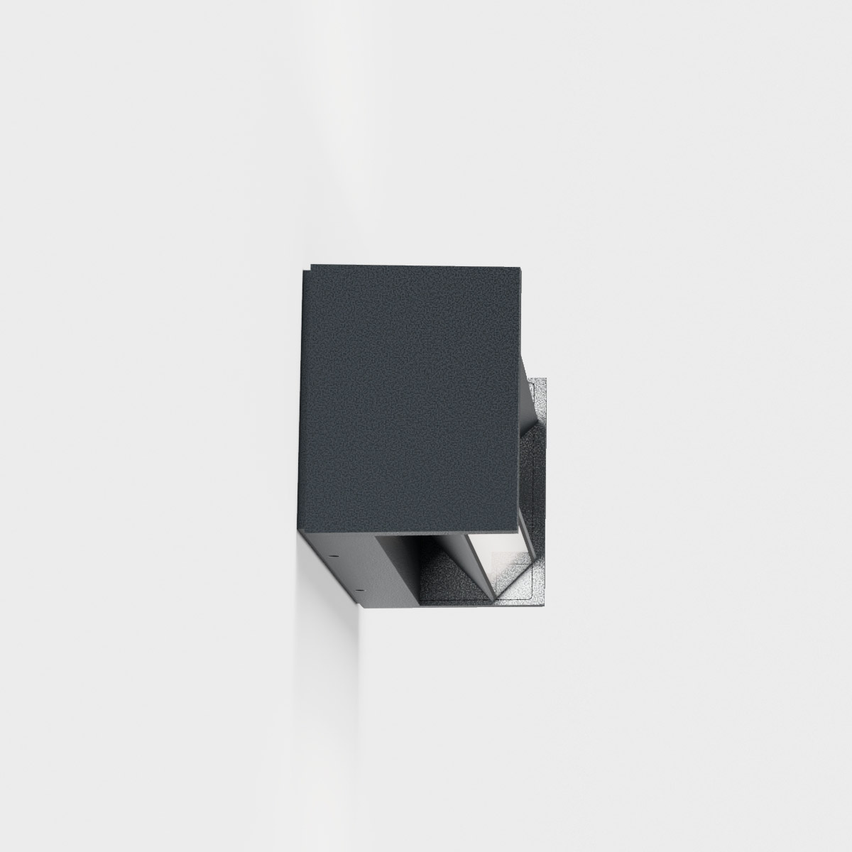 Mit der Slat Wand- und Deckenleuchte von IP44.DE lassen sich Eingänge und Fassaden raffiniert gestalten. Die nach funktionalen Gesichtspunkten gestaltete Außenleuchte trägt zwei schlanke Lichtlamellen, die unabhängig voneinander um 240° gedreht werden können. Als Wallwasher konzipiert, erzeugen sie ein breit gestreutes Licht von brillanter, warmweißer Farbigkeit. Je nach Ausrichtung der Lamellen ist eine direkte oder indirekte Beleuchtung möglich. Weisen beide Elemente in entgegengesetzte Richtung, lässt sich die Slat auch als klassisches Up- und Downlight nutzen. Auf diese Weise lassen sich mit der Leuchte unterschiedliche Lichtstimmungen erzeugen, die immer wieder variiert werden können – ganz nach Belieben und ohne lästige Montagearbeiten. Installiert werden kann die IP44.DE Slat sowohl als Wandleuchte als auch Deckenleuchte, was ihre Einsatzflexibilität um ein weiteres Mal steigert. Ein echtes Lichtwerkzeug für jede Front!