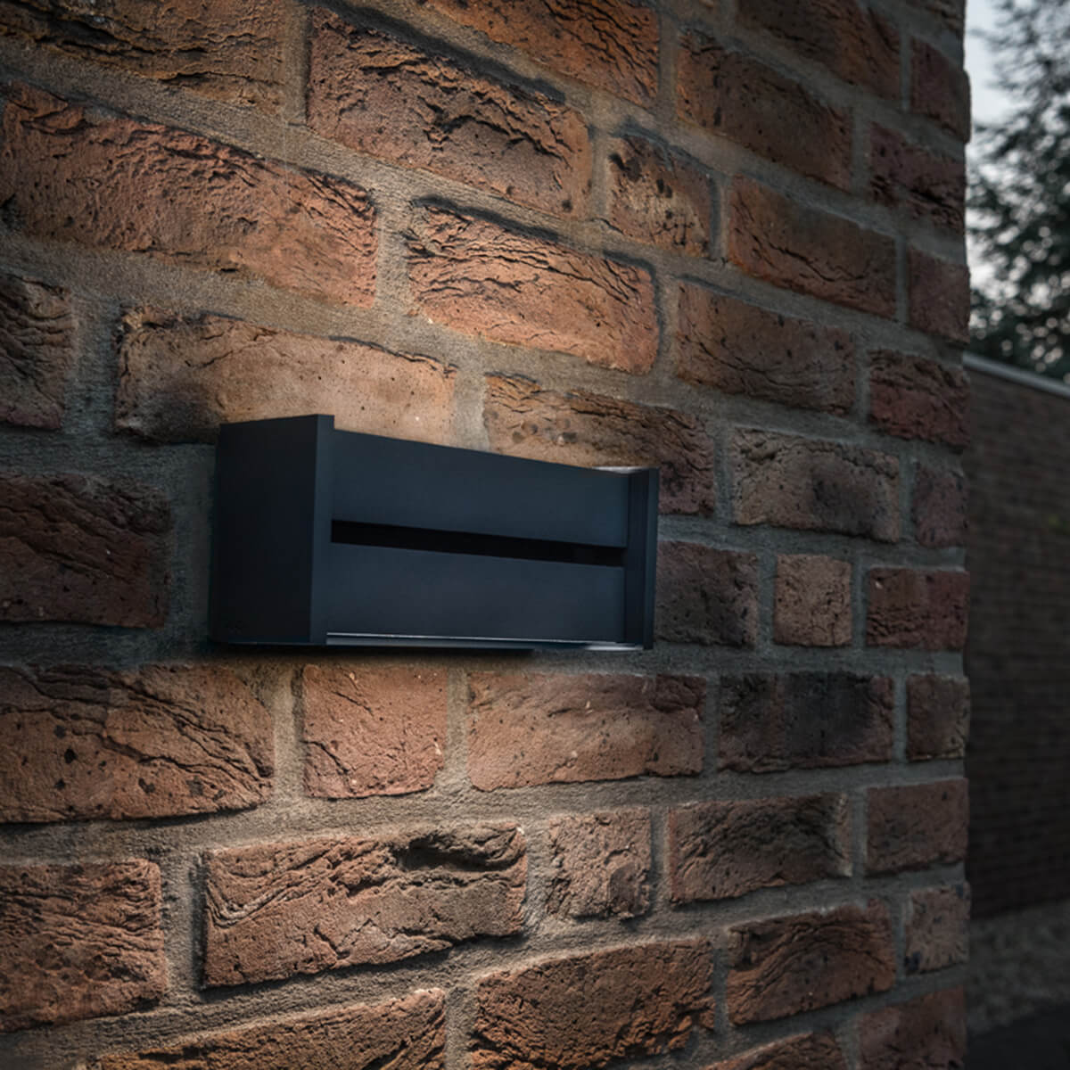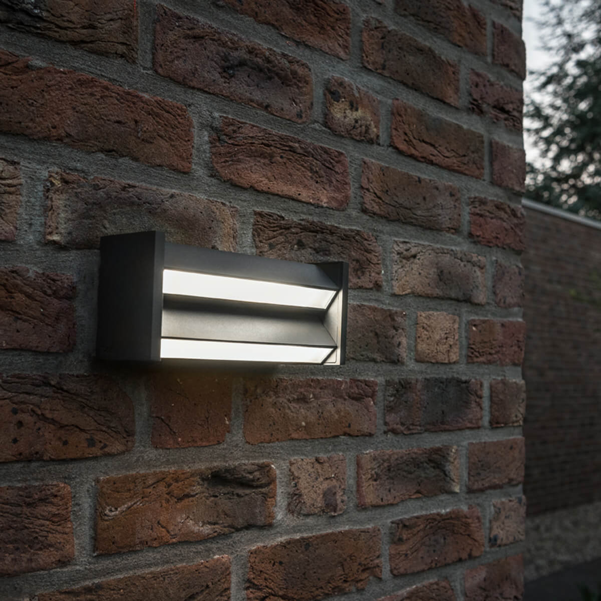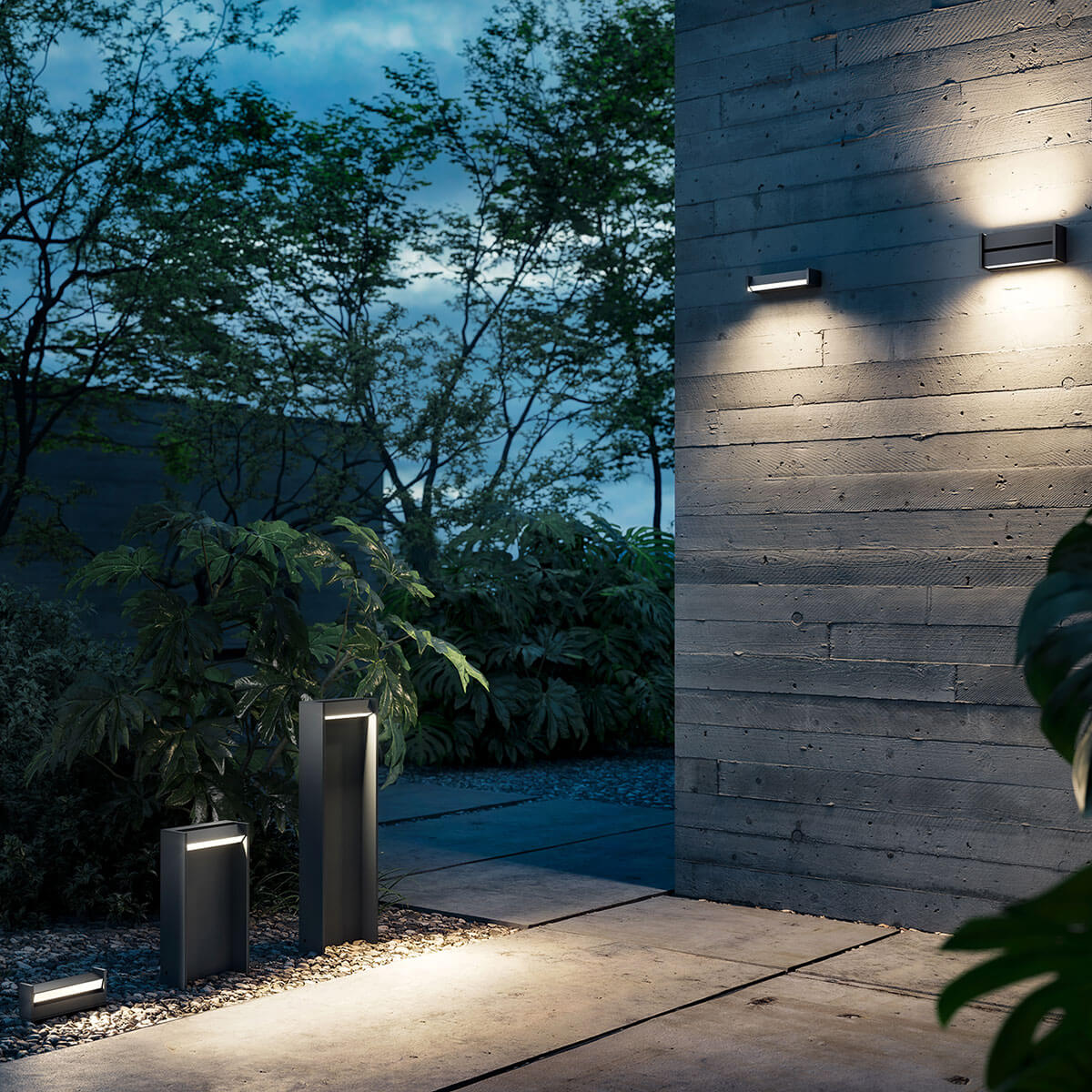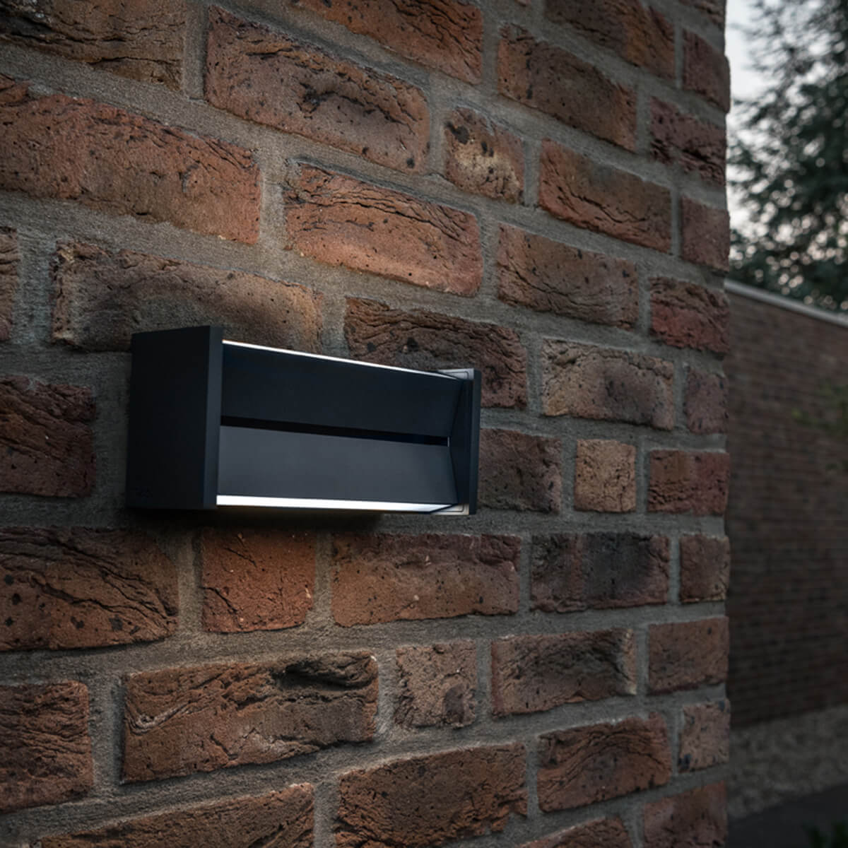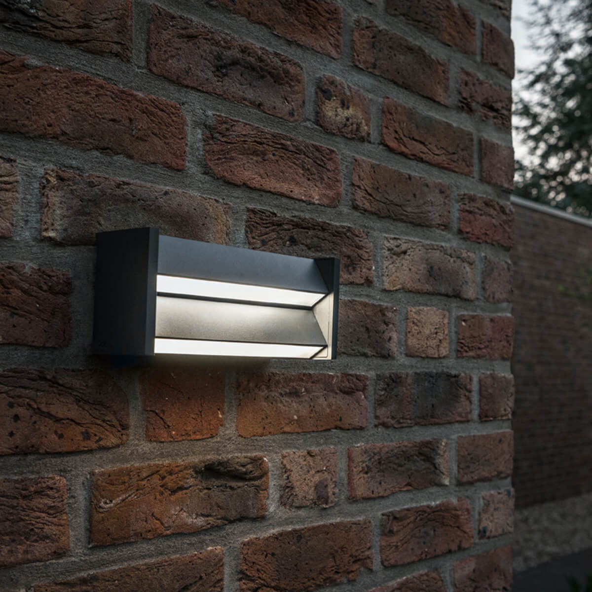 Mit der Slat Wand- und Deckenleuchte von IP44.DE lassen sich Eingänge und Fassaden raffiniert gestalten. Die nach funktionalen Gesichtspunkten gestaltete Außenleuchte trägt zwei schlanke Lichtlamellen, die unabhängig voneinander um 240° gedreht werden können. Als Wallwasher konzipiert, erzeugen sie ein breit gestreutes Licht von brillanter, warmweißer Farbigkeit. Je nach Ausrichtung der Lamellen ist eine direkte oder indirekte Beleuchtung möglich. Weisen beide Elemente in entgegengesetzte Richtung, lässt sich die Slat auch als klassisches Up- und Downlight nutzen. Auf diese Weise lassen sich mit der Leuchte unterschiedliche Lichtstimmungen erzeugen, die immer wieder variiert werden können – ganz nach Belieben und ohne lästige Montagearbeiten. Installiert werden kann die IP44.DE Slat sowohl als Wandleuchte als auch Deckenleuchte, was ihre Einsatzflexibilität um ein weiteres Mal steigert. Ein echtes Lichtwerkzeug für jede Front!