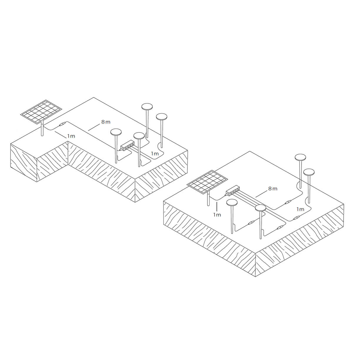 - Erlaubt die max. Entfernung von 10 m zwischen Solarpanel und Leuchten