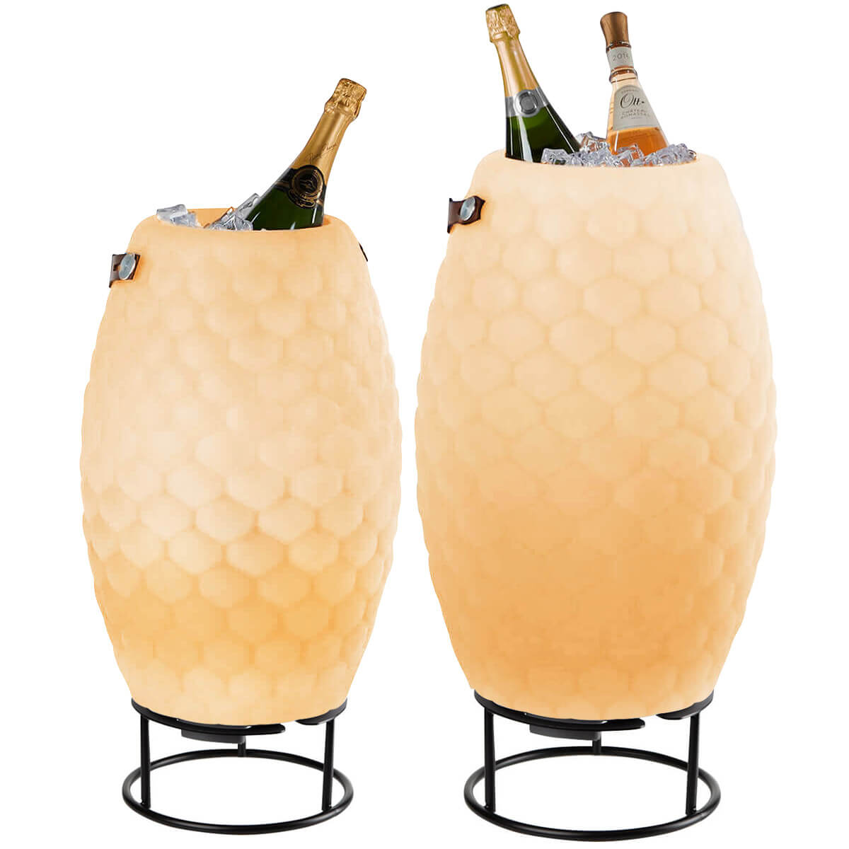Joouls 2er Set The Joouly Ltd. LED Akkuleuchte, Bluetooth Lautsprecher & Weinkühler: zweifache Freude mit Licht, Musik und Kühlfunktion in einem