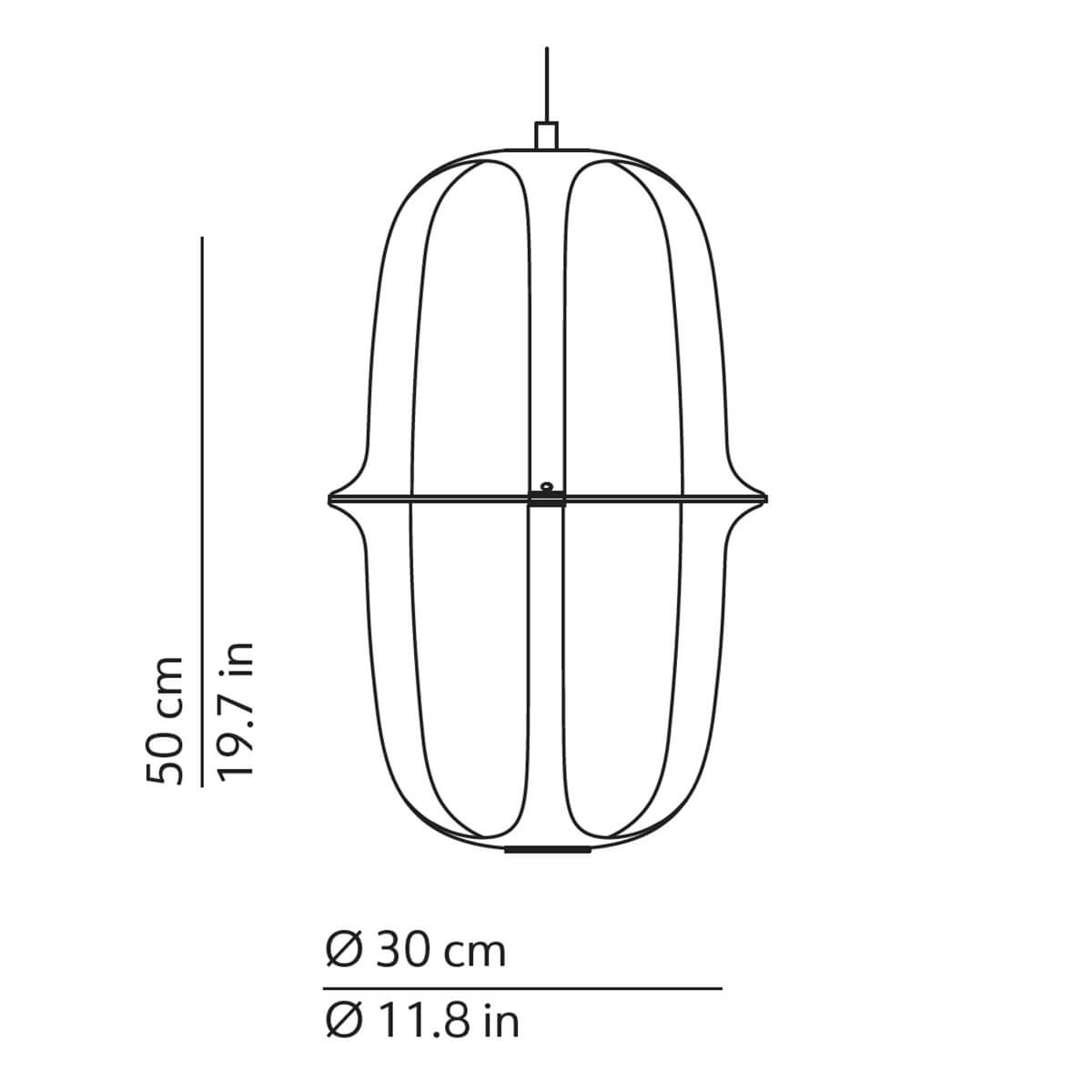 Die Pendellampe besticht durch eine einzigartige Symbiose aus Materialien und Formen. Der mundgeblasene Glasdiffusor, leicht und zart, und der robuste, mattschwarze Metallrahmen bilden ein Kontrastspiel, das Leichtigkeit und Schwere, Schwarz und Weiß, kunstvoll vereint. Diese spannende Gegensätzlichkeit verleiht der Kooi eine besondere Aura und zieht alle Blicke auf sich.