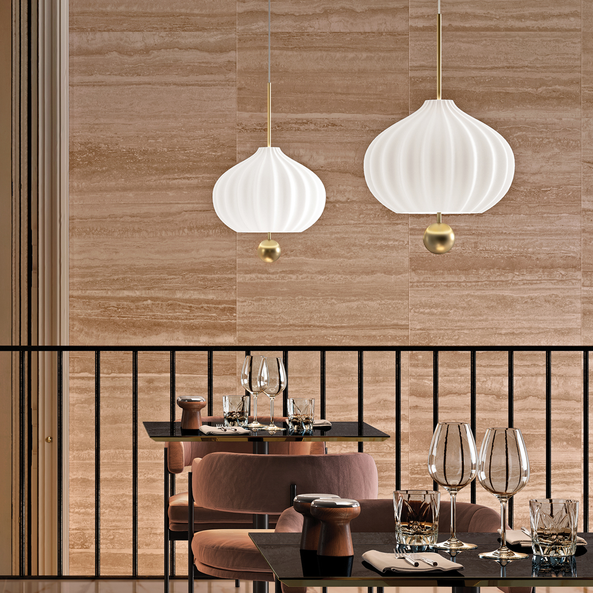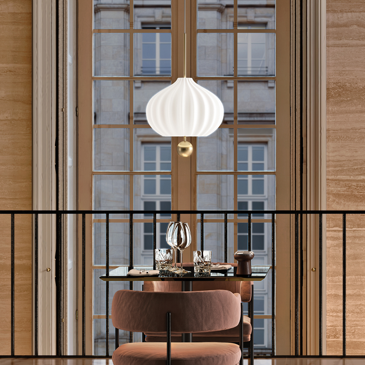 - Wunderschön konturierte Pendelleuchte mit eleganter Messingstruktur