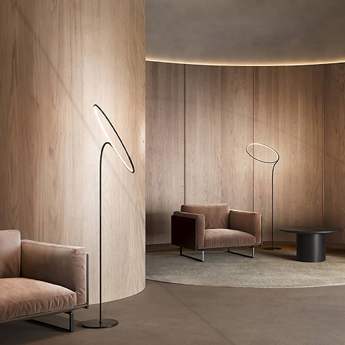 - Dynamisch ausrichtbare Design-Stehleuchte mit puristischer Linienführung