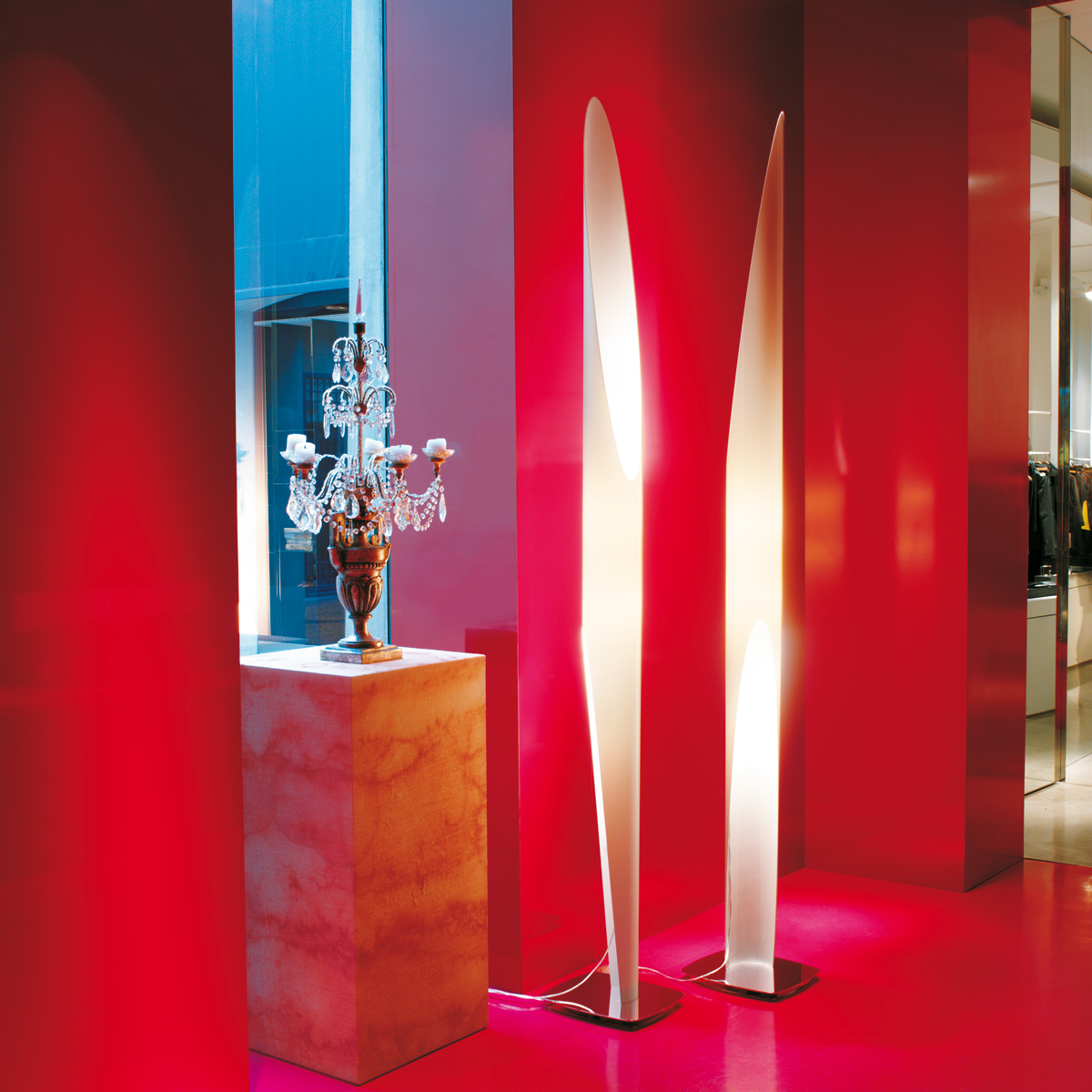 Die von Marzio Rusconi Clerici kreierte Kundalini Shakti 200 ist eine kunstvolle Lichtsäule, die ein angenehmes Leselicht mit stimmungsvollem Raumlicht kombiniert. Die doppelte Lichtausstrahlung wird durch zwei schlanke Öffnungen im Korpus erzeugt: Über einen Spalt nahe dem Leuchtenfuß erstrahlt das Licht nach unten hin, eine obere Aussparung sorgt für einen indirekten Lichtaustritt. Über einen integrierten Dimmer kann die Lichtintensität der Shakti 200 Leuchte nach Belieben gesteuert werden.
