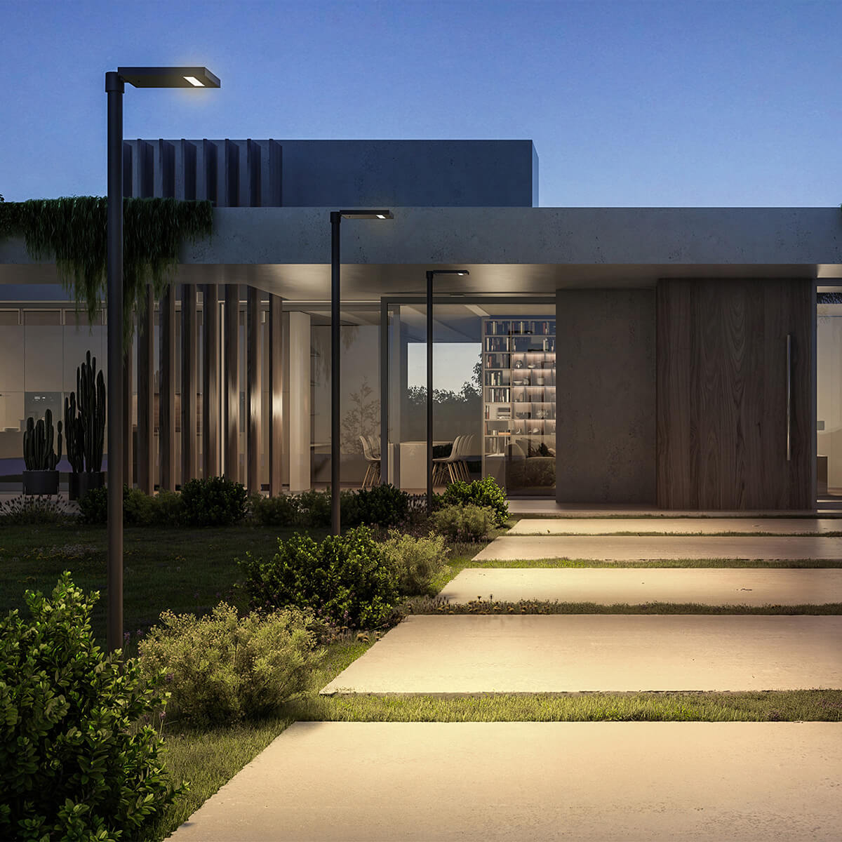 Mit ihrer Größe ist die Solarlampe wie geschaffen für große und offene Flächen im Außenraum, die energieeffizient beleuchtet werden sollen. Ob zur Begrenzung von Grundstücken, entlang von Gehwegen oder zur Aufhellung dunkler Ecken in Park oder Innenhof – mit ihrem klaren Design und der effektiven Lichtverteilung bringt die Link Ästhetik und Sicherheit zusammen.