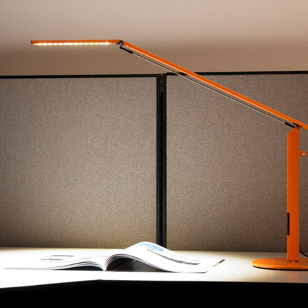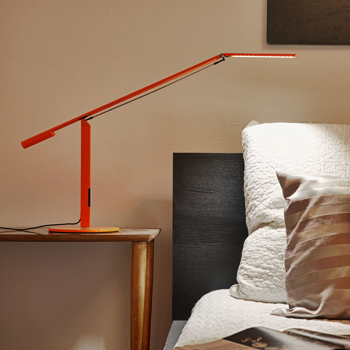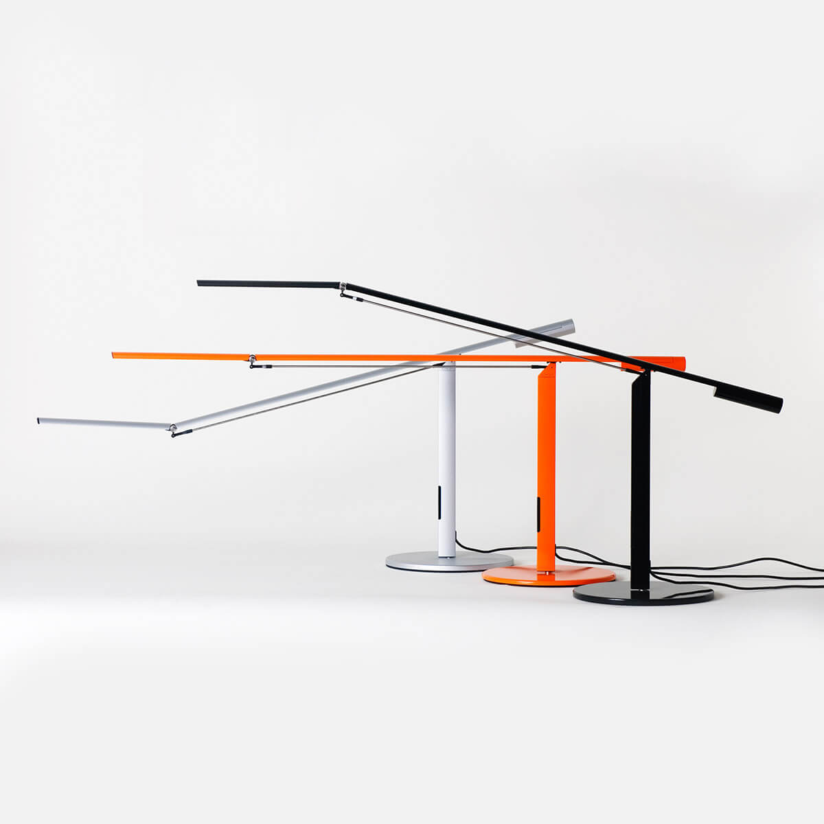 Das geschmeidige Design der Koncept Equo Schreibtischleuchte erfährt durch die Kombination mit geschmackvollen, glänzenden Lackierungen eine ästhetische Steigerung. Fünf unterschiedliche Farben stehen zur Auswahl, die von diskretem Weiß über modisches Orange bis hin zu glanzvollem Chrom reichen.