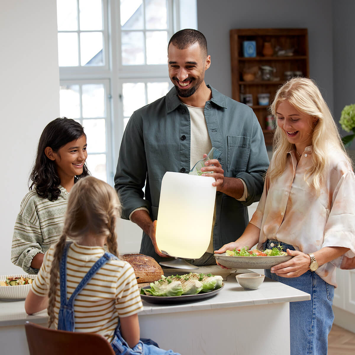 Die Atmos Design-Tischlampe ist mehr als nur eine puristische Lichtquelle. Dank eingebautem High-End-Bluetooth-Lautsprecher und Bright Sound Technology™ von Kooduu spendet die LED-Leuchte ein warmes, dimmbares Licht und kann zugleich dazu genutzt werden, Ihre Lieblingssongs und Podcasts in sattem Klang wiederzugeben. Für noch mehr Soundstärke lässt sich die Atmos mit einer weiteren Leuchte koppeln, wahlweise auch mit einem Modell der Kooduu Sphere, Synergy 2.0 oder Lite-up Play 2.0.