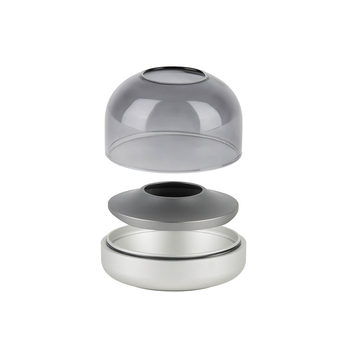 Das Kooduu Glow 08 Windlicht kann mit den passenden LED-Kerzen der Marke Kooduu bestückt werden. Diese sind als Zubehör erhältlich. Alternativ lässt sich das Produkt mit Maxi-Teelichtern ausstatten. Bitte achten Sie in diesem Fall darauf, die Glow auf eine hitzebeständige Unterlage zu stellen, da sich der Korpus etwas erwärmen kann.
