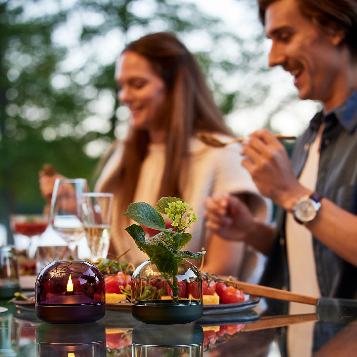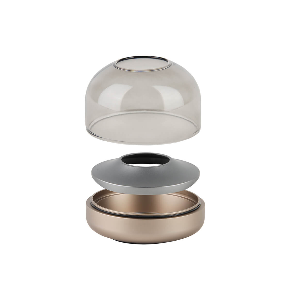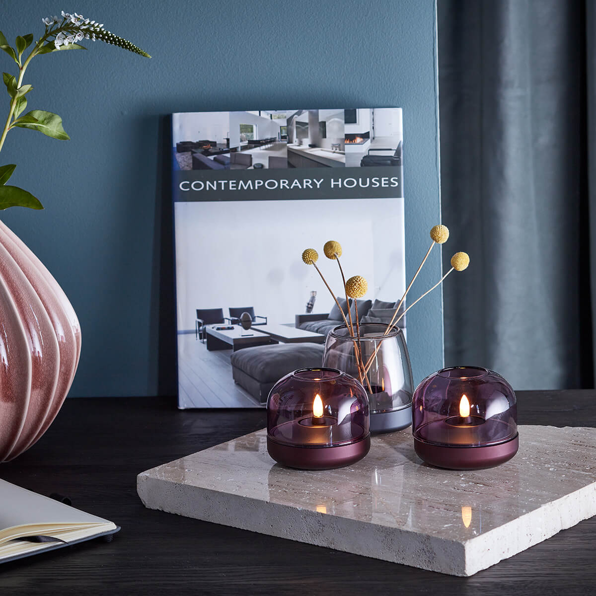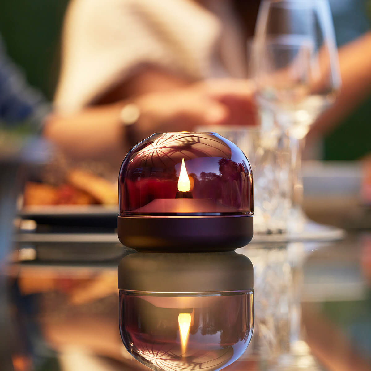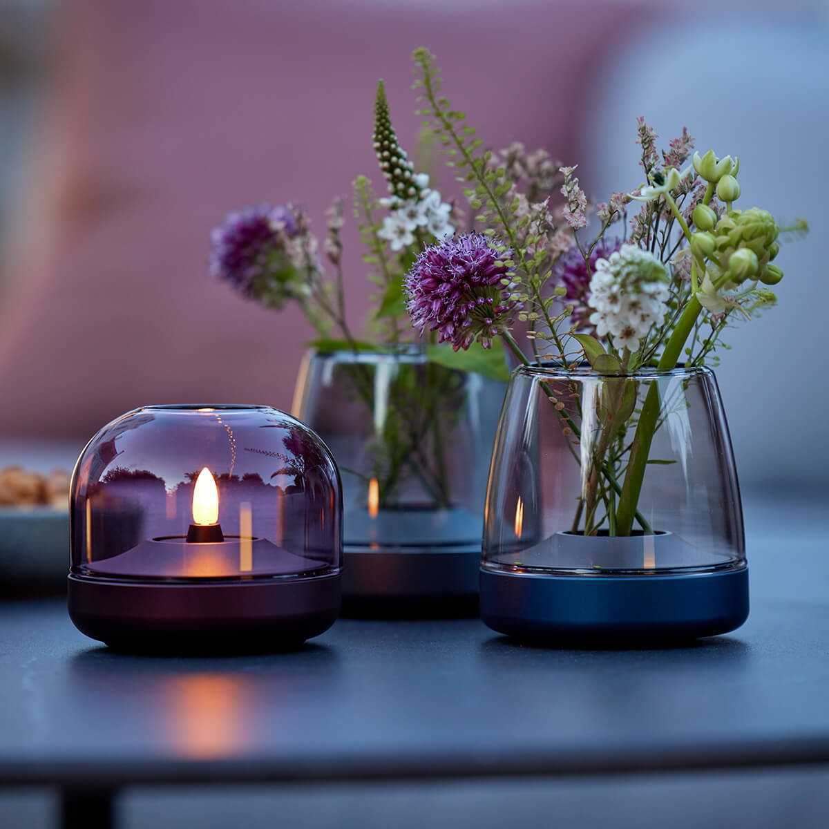Der Kerzenhalter ist vielseitig einsetzbar: Als klassisches Windlicht mit Maxi-Teelichtern sorgt er für eine warme, einladende Atmosphäre. Bitte achten Sie in diesem Fall darauf, die Glow 08 auf eine hitzebständige Unterlage zu stellen, da sich der Korpus etwas erwärmen kann. Noch sicherer wird das Erlebnis mit der optionalen Kooduu Shine LED-Kerze. Diese wiederaufladbare, flammenlose Lichtquelle ahmt echtes Kerzenlicht perfekt nach und bietet bis zu 100 Stunden Betriebszeit bei nur 3 Stunden Ladezeit.