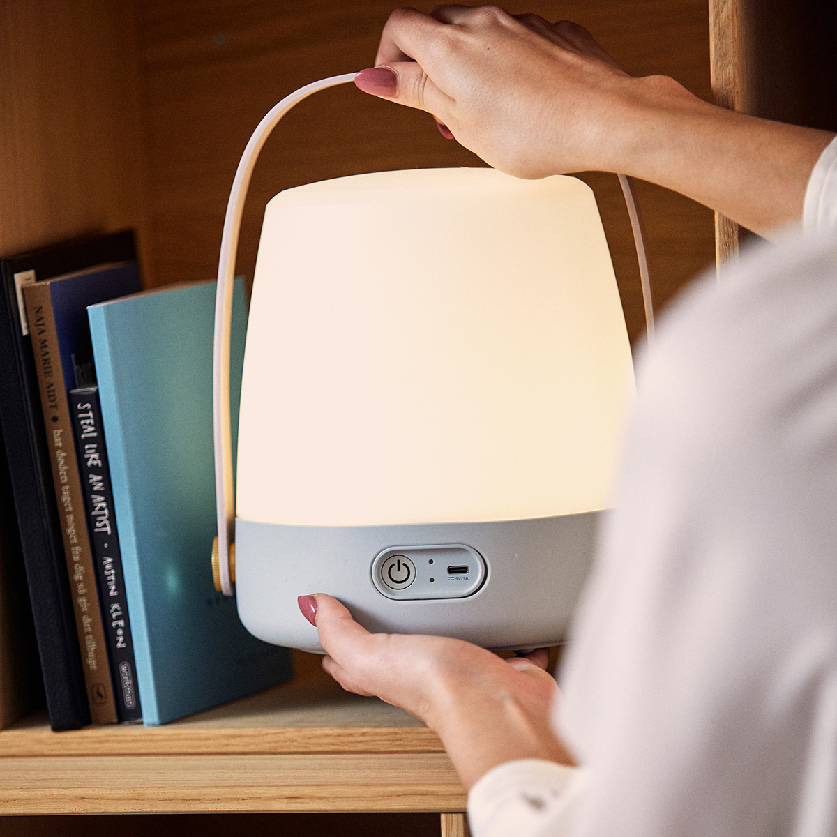- Kabellose Tischlampe für ein diffuses, stimmungsvolles Licht