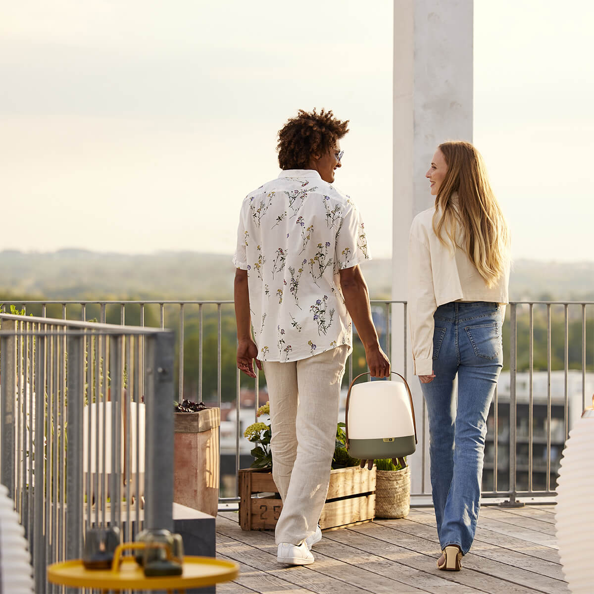 Neben der hohen Klangqualität überzeugt die Soundleuchte auch mir ihrem warmen, behaglichen Licht, das sich in fünf Stufen dimmen lässt. Die Beleuchtung kann unabhängig vom Sound gesteuert werden, sodass sich die Lite-up Play wahlweise nur als Musikbox oder LED-Lichtquelle nutzen lässt. Der eingebaute Akku gewährleistet eine Betriebszeit von bis zu 8 Stunden. Wieder aufgeladen werden kann die Leuchte über das mitgelieferte USB-C-Kabel. Ein Adapter ist nicht inklusive, steht jedoch als Zubehör zur Verfügung (5V / 2A empfohlen).