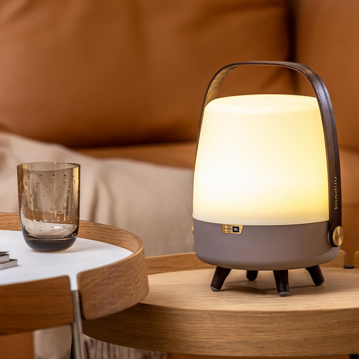 Die Lite-up Play Mini 2.0 von Kooduu, ausgestattet mit einem hochwertigen Lautsprechersystem von JBL, ist mehr als nur eine Akkulampe: Sie ist eine Kombination aus exzellenter JBL-Soundqualität, stimmungsvollem Lichtdesign und stilvoller skandinavischer Formensprache. Die Lautsprecherleuchte lässt sich ganz einfach per Bluetooth mit dem Smartphone verbinden und sorgt für ein herausragendes Klangerlebnis – bis zu 8 Stunden lang. Dies macht die Leuchte, zusammen mit ihrem handlichen Format, zu einem außergewöhnlichen Gadget für Gartenpartys, Campingtrips und gemütliche Abende daheim.