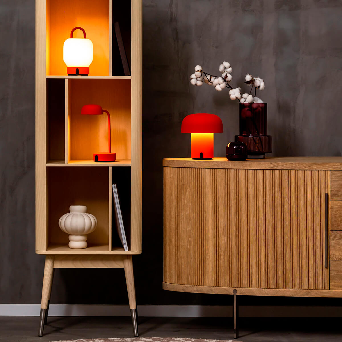 Flexibel, handlich und zeitlos schön, ist die Loome LED Akkulampe mehr als nur eine Lichtquelle: Sie ist ein stilvolles, mobiles Accessoire, das Ihren Räumen einen Hauch von Stil und Gemütlichkeit verleiht. Ideal für den Abend auf der Terrasse, im Wohnzimmer oder als gemütliche Nachttischlampe, bietet die Lampe überall dort, wo es gebraucht wird, das perfekte Licht.