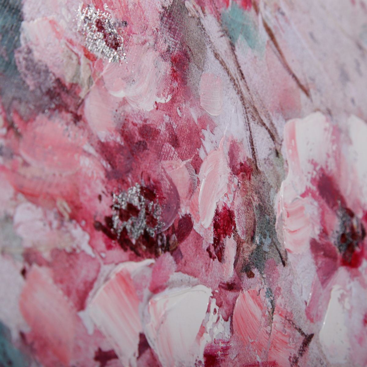 - Ölgemälde mit Kirschblüten und silberfarbenen Akzenten