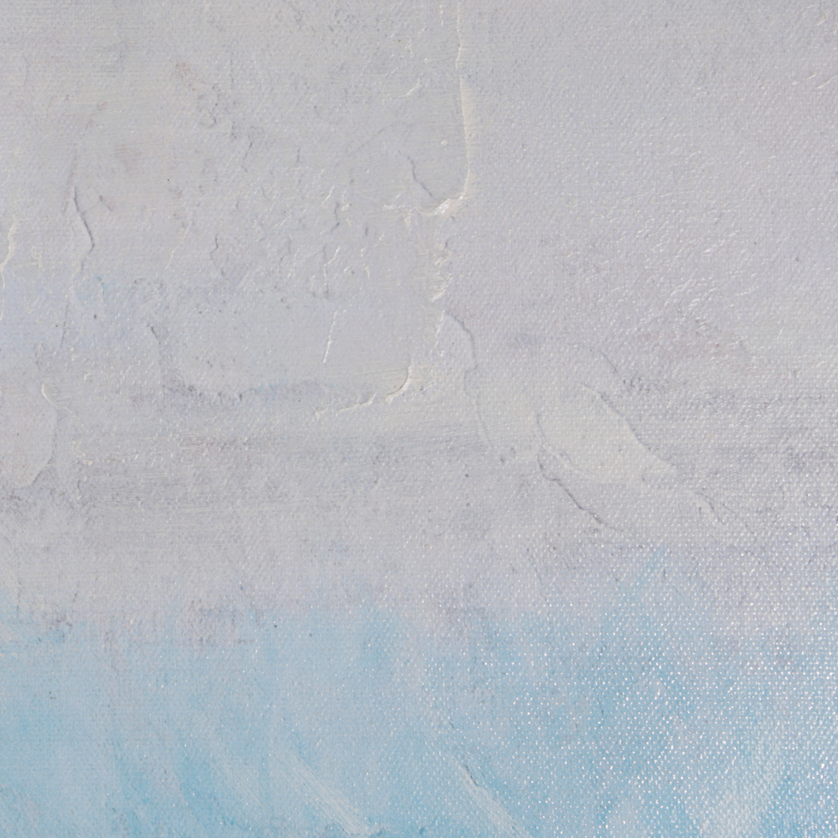 Atmosphärisch, abstrakt, diffus: Das Wandbild, dessen schlichter Titel nichts verrät über das Dargestellte, lässt Spielraum für vielfältige Assoziationen. Ist es das Rauschen des Meeres, dessen Gischt sich in den Himmel erhebt? Eine Spur im Schnee, kaum mehr nachzuverfolgen? Oder sind es dunstige, sich bis ins Unendliche auftürmende Nebelschwaden? Welches Motiv der Leinwand auch immer zugrunde liegt, die Schönheit ist ihm kaum abzusprechen.