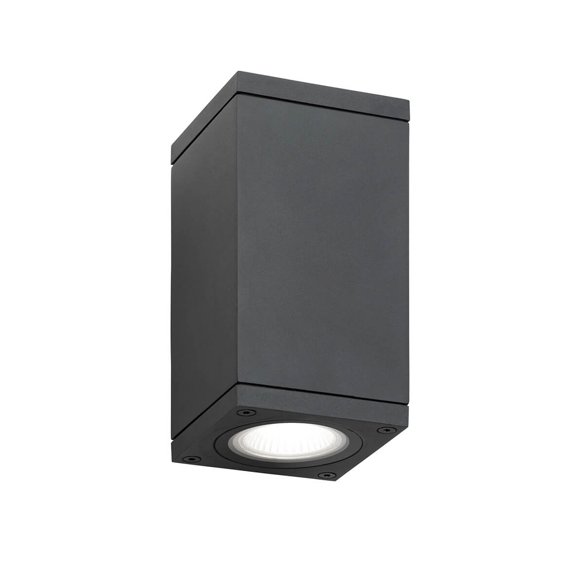 - Eckige Außenwandleuchte aus pulverbeschichtetem Aluminiumdruckguss mit einem Diffusor aus Floatglas