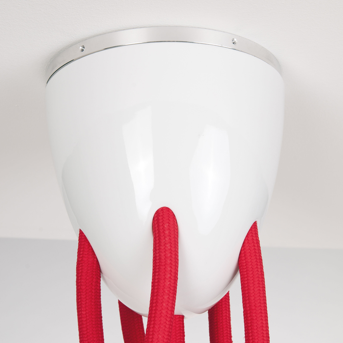 Less'n'more Athene LED Pendel - / Deckenleuchte, 6-flg., Textilkabel: rot, Porzellanbaldachin, Detail