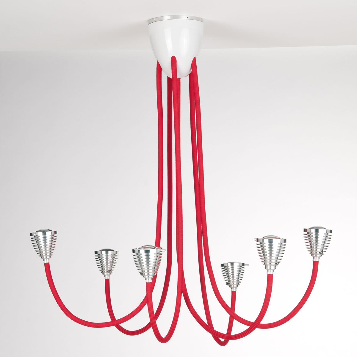 Less'n'more Athene LED Pendel - / Deckenleuchte, 6-flg., Textilkabel: rot mit weißem Baldachin