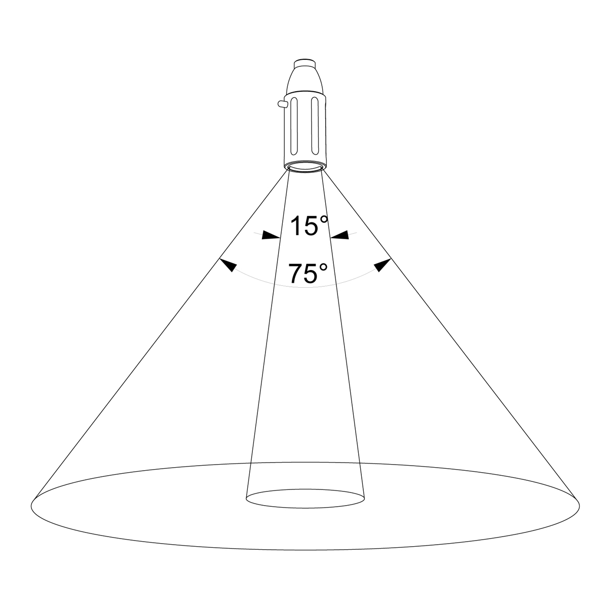 - Fokussierbare Glaslinsenoptik ermöglicht eine Einstellung des Abstrahlwinkels (15° bis 75°)