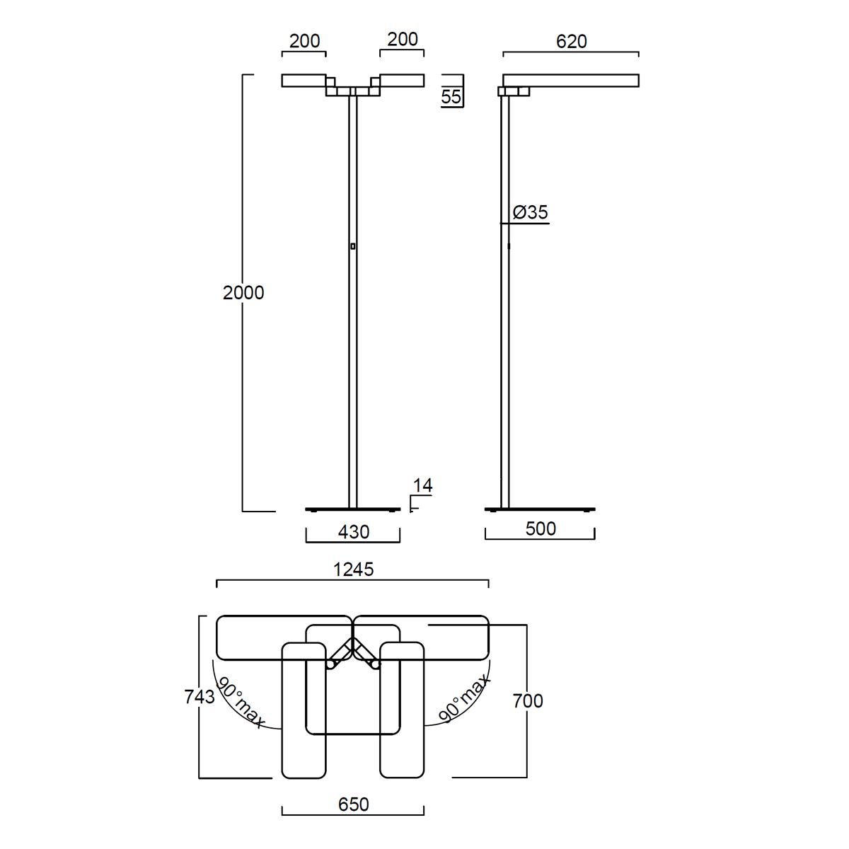 | Material/surface: | Extruded aluminum profile, matt lacquered, base: powder-coated steel |