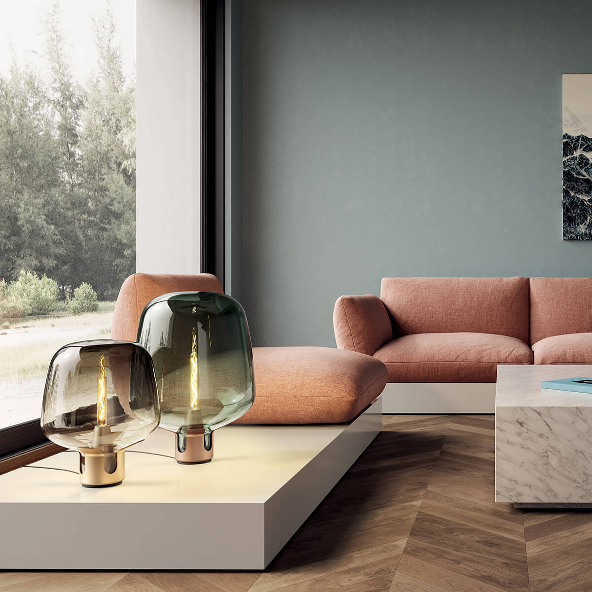 - Schicke Tisch- und Bodenleuchte für den Wohn- und Loungebereich