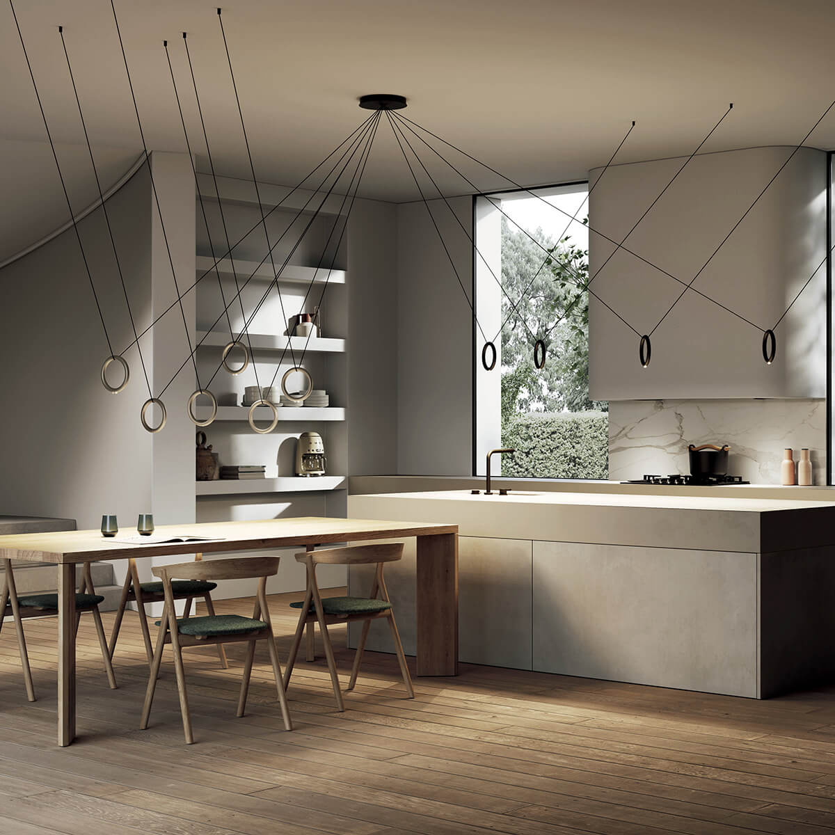Die Ivy V LED-Pendelleuchte von Lodes wird vorkonfiguriert mit einem Pendel und einem Baldachin geliefert. Gerne bieten wir Ihnen verschiedene Kompositionen der Ivy Leuchtenserie auf Anfrage an. Kontaktieren Sie hierzu einfach unseren Kundenservice.