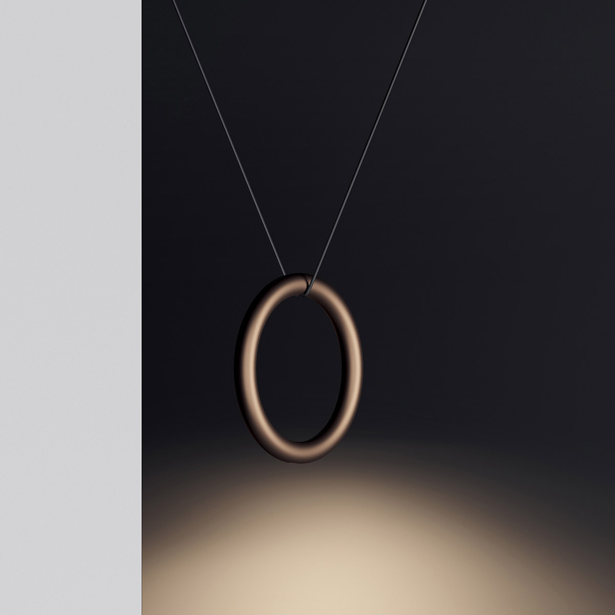 Das Design der Pendellampe erinnert an eine Halskette, an der ein Ring hängt. Die Ivy setzt Akzente und wirkt sehr schlicht, aber dennoch kostbar durch ihre besonderen Oberflächenfarben. Ausgestattet mit einem Doppelkabel sieht die Pendelleuchte angeschlossen aus wie ein "V" und kann variabel an einer beliebigen Stelle montiert werden. Das eine Ende des Kabels wird an der Stromquelle befestigt und das andere Ende kann nach Belieben etwas weiter oder näher mithilfe eines Metallelementes fixiert werden.