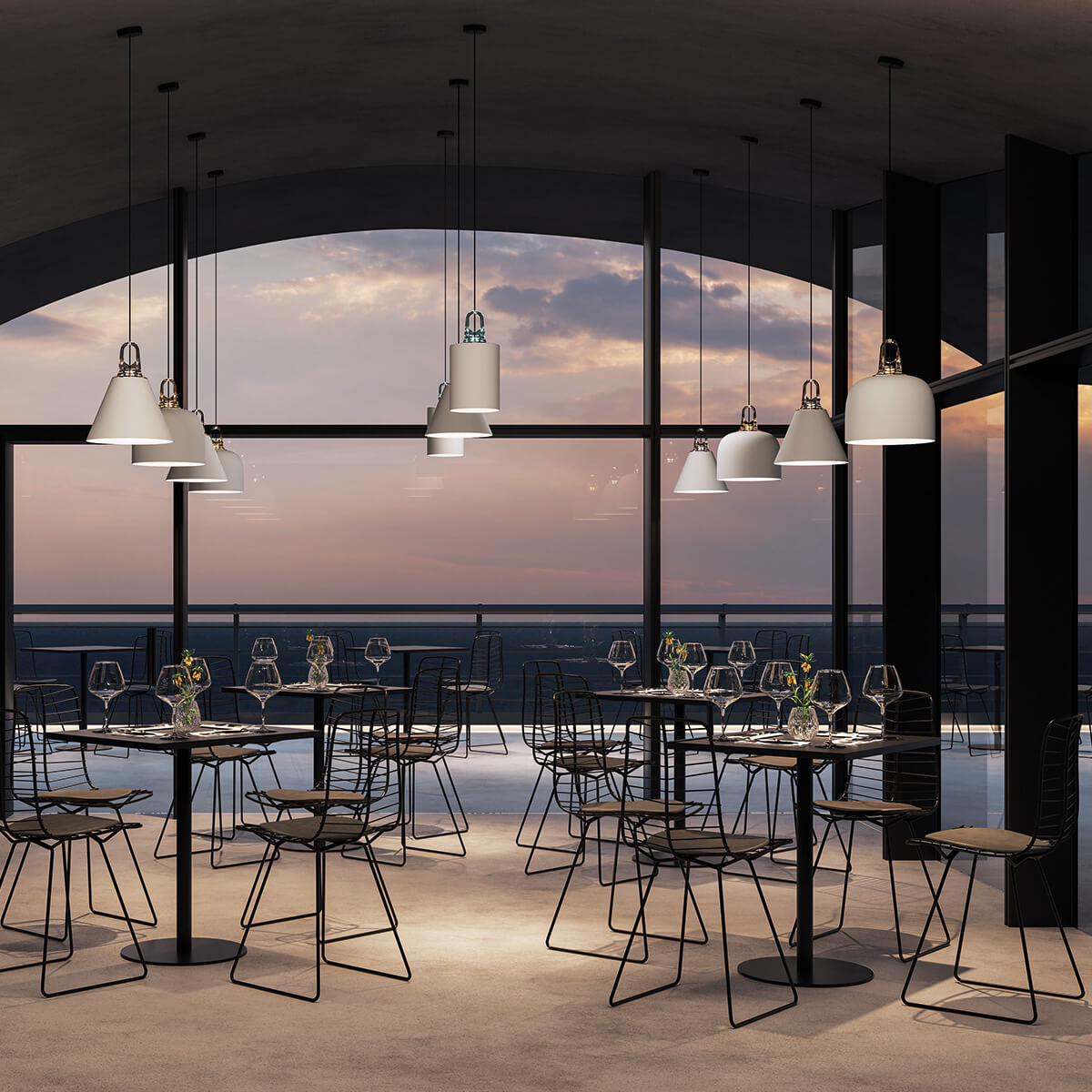 - Sanft gewölbte Hängeleuchte mit klarer Linienführung
