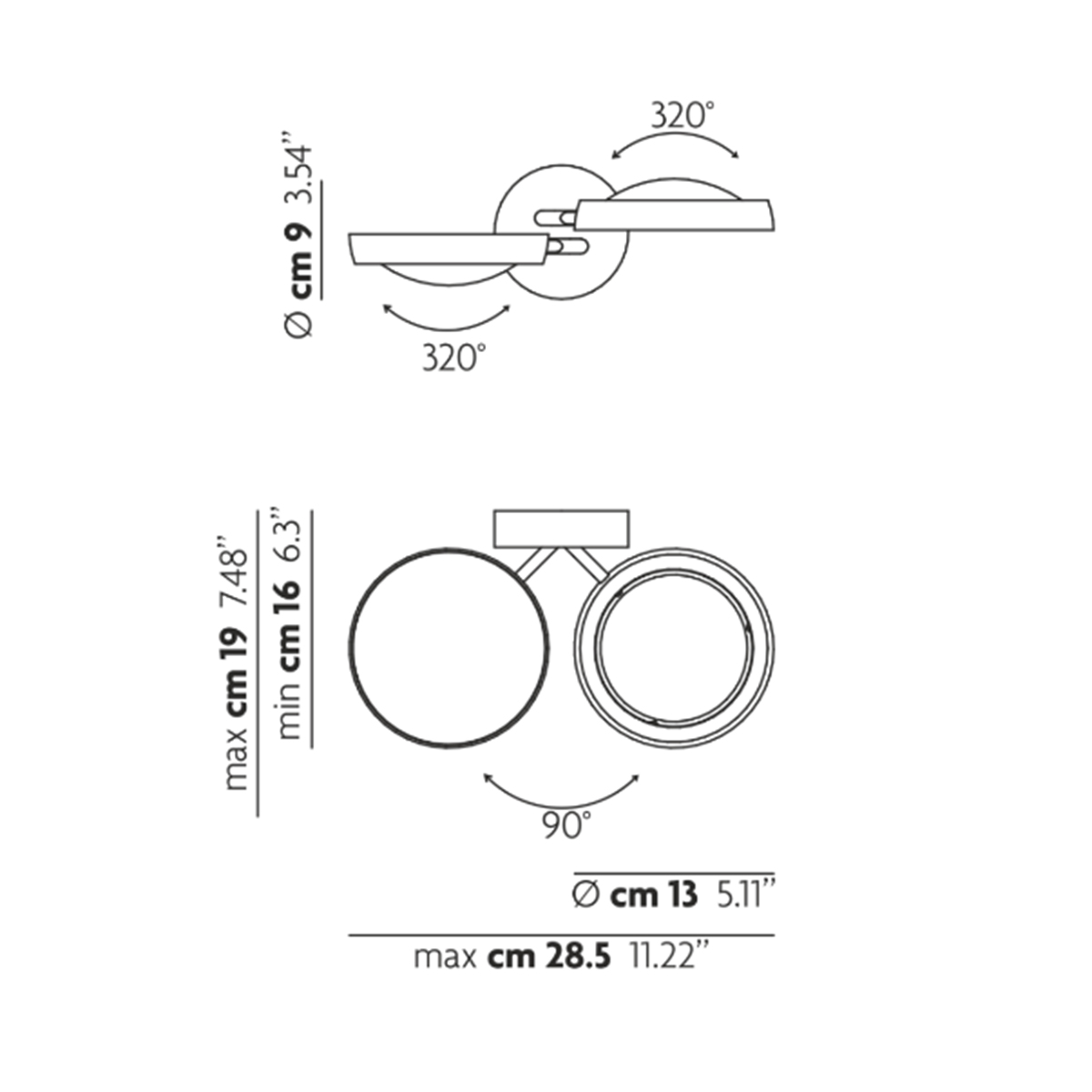 - Köpfe je um 320° drehbar und um 90° schwenkbar