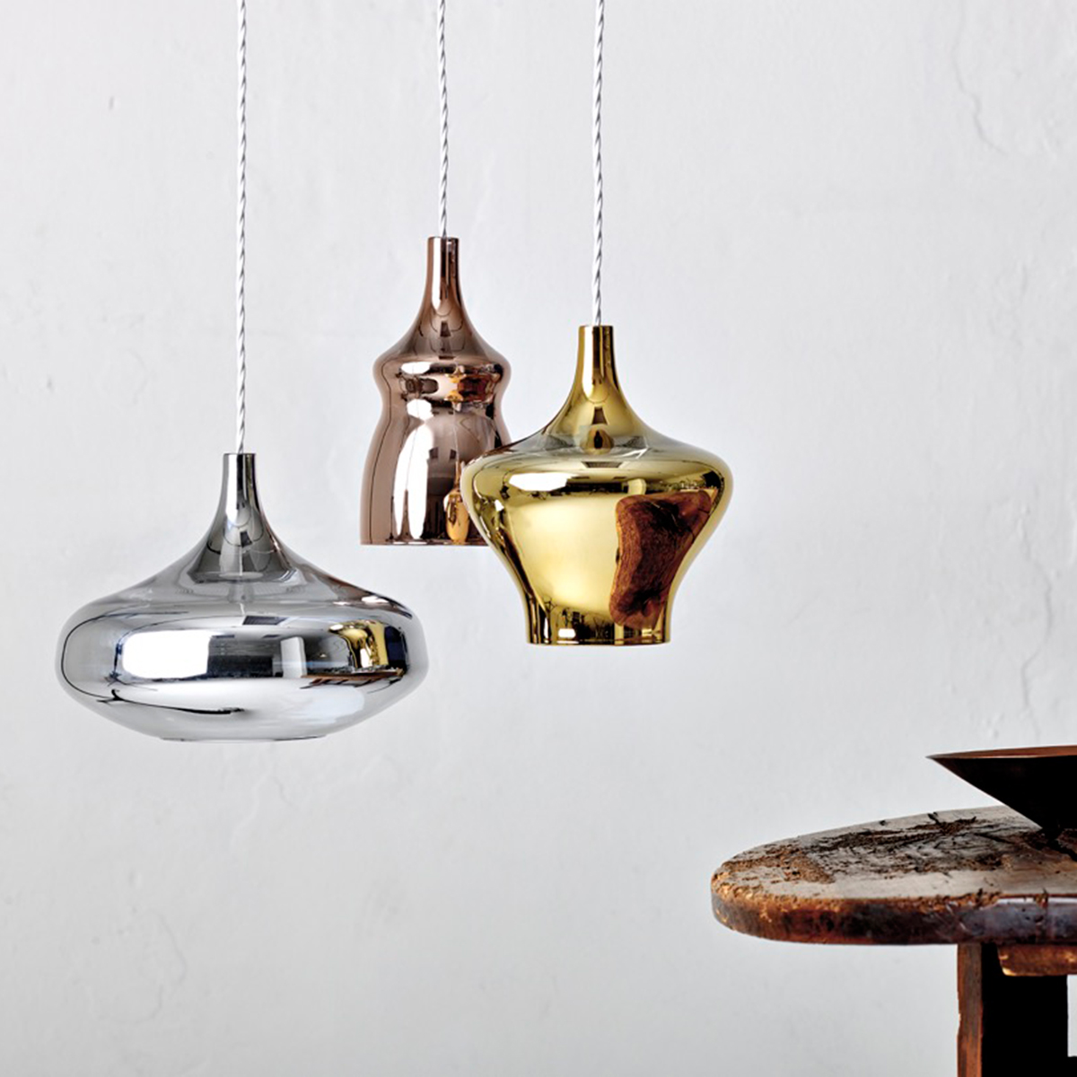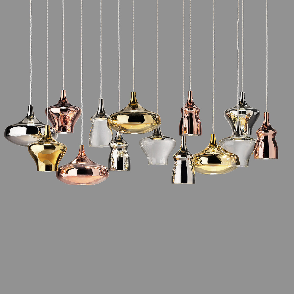 - 1- Flammige Variante mit 1 x Glas Large LED Pendelleuchte in jeweils der ausgewählten Oberfläche mit einem weißen Baldachin