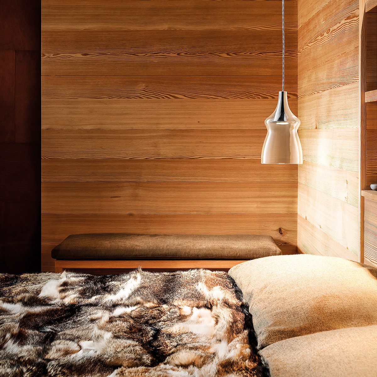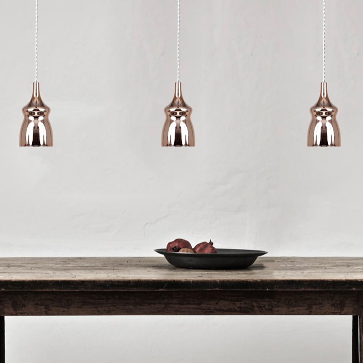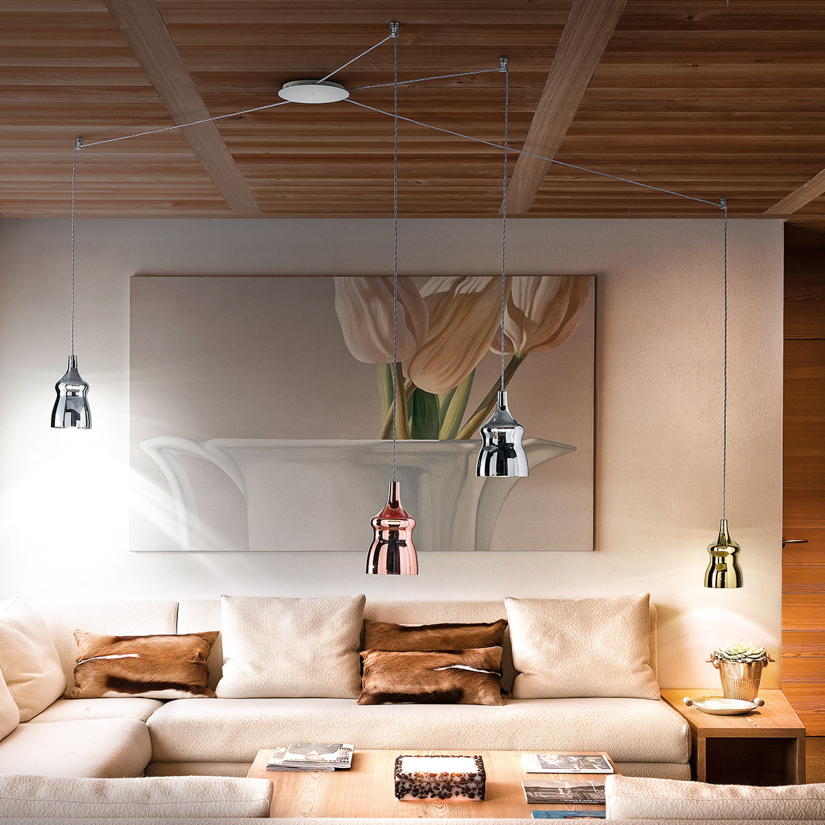 - 1- Flammige Variante mit 1 x Glas Small LED Pendelleuchte in jeweils der ausgewählten Oberfläche mit einem weißen Baldachin