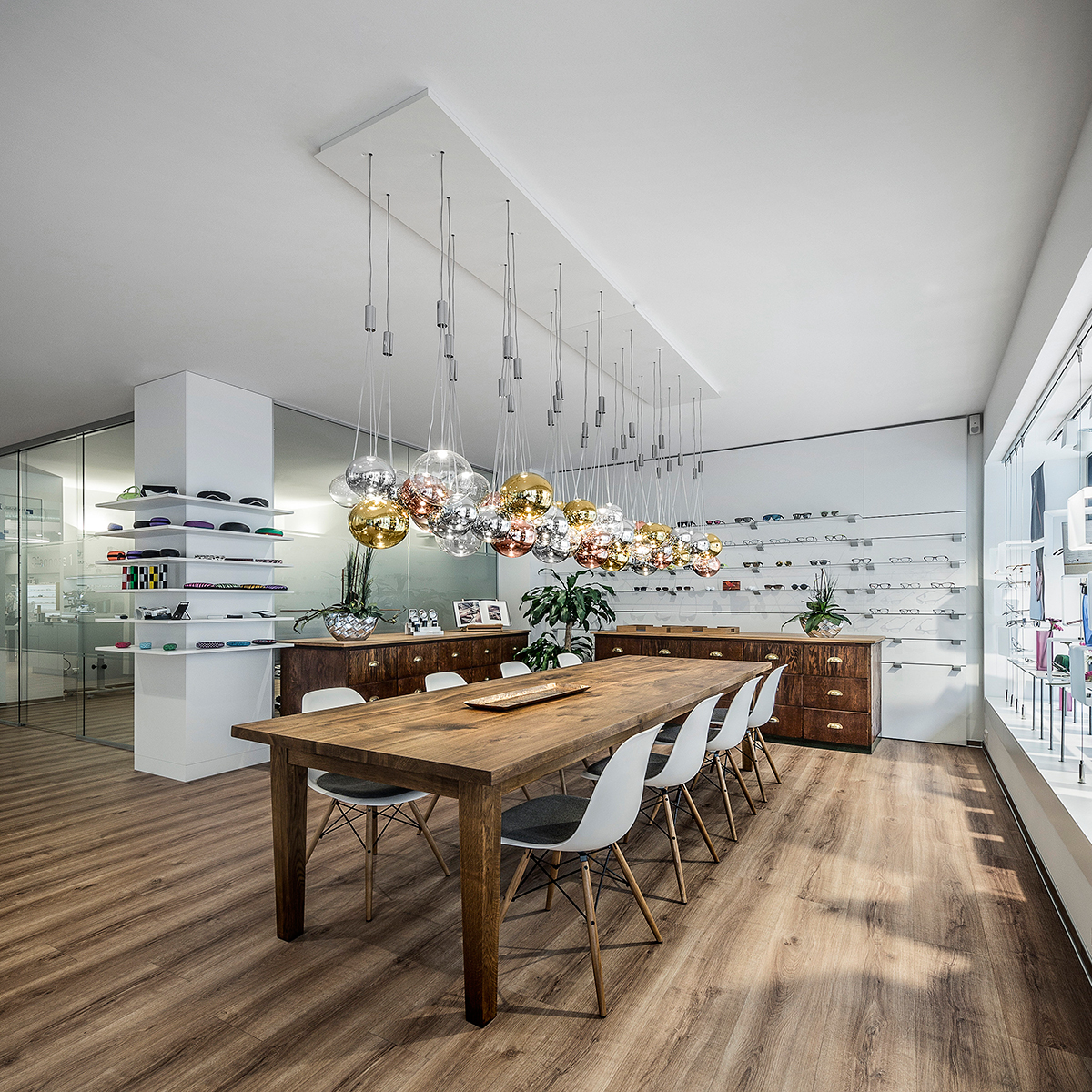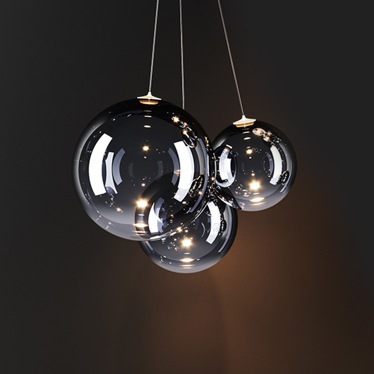 - Glanzvolle Pendellampe mit drei unterschiedlich großen Glaskugeln
