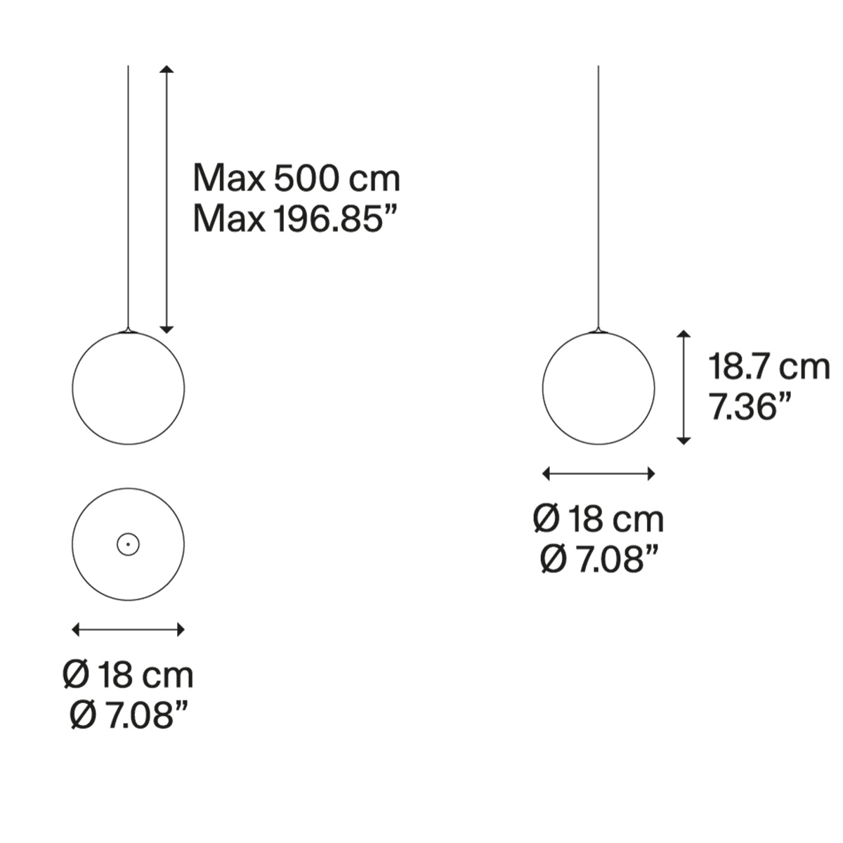 Lodes Random Solo 18 LED Pendelleuchte, Maßzeichnung