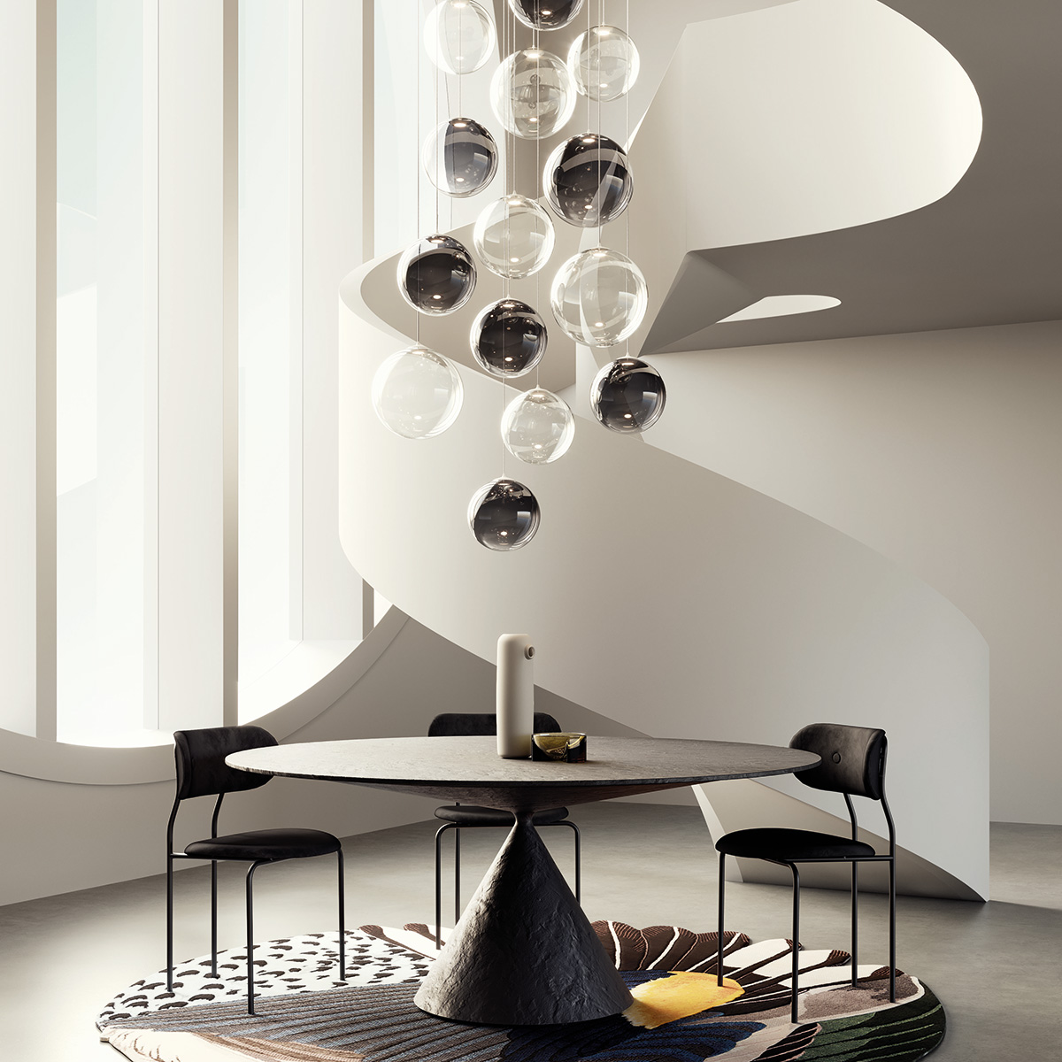 Lodes Random Solo 28 LED Pendelleuchte, Chrom und weiß matt satiniert, Detail
