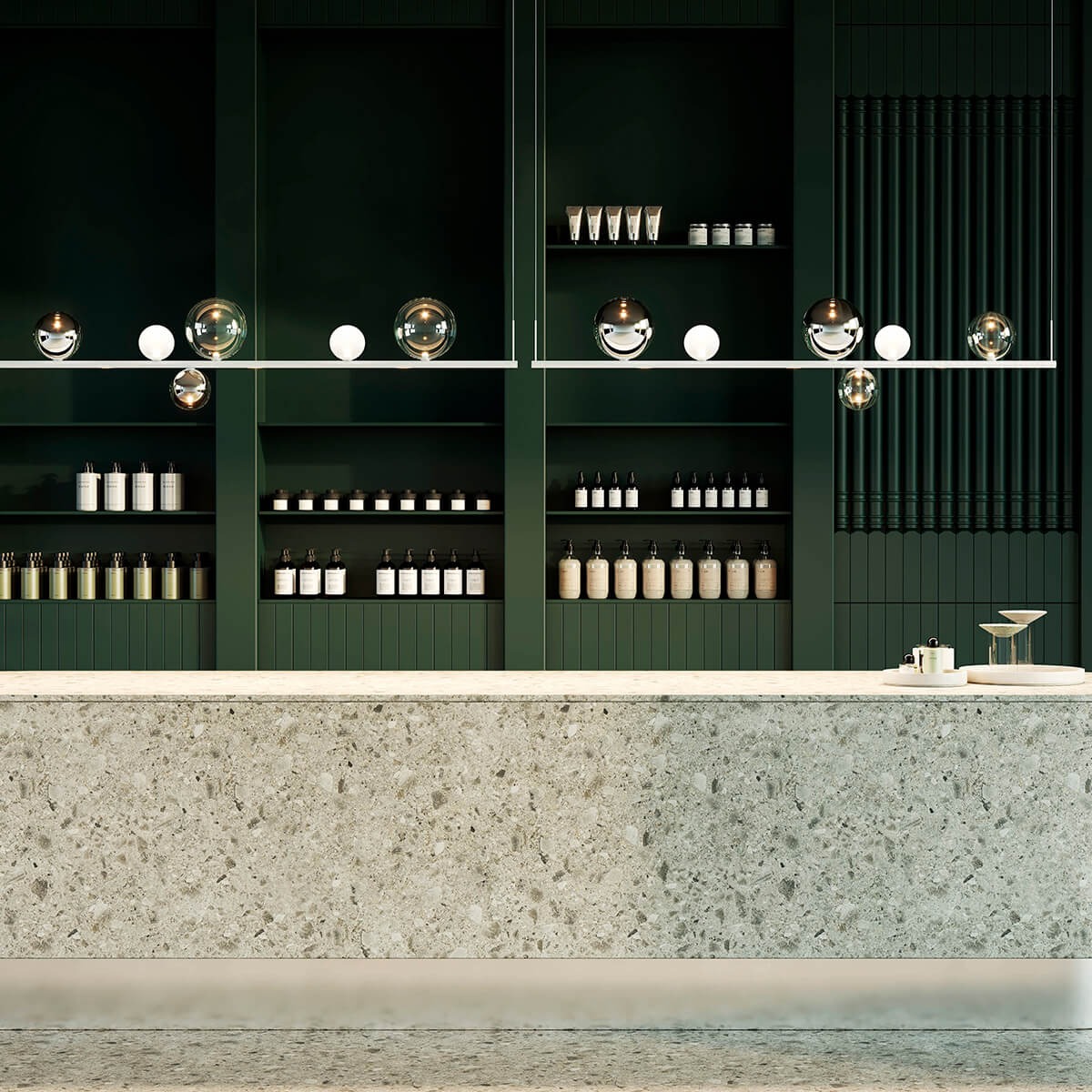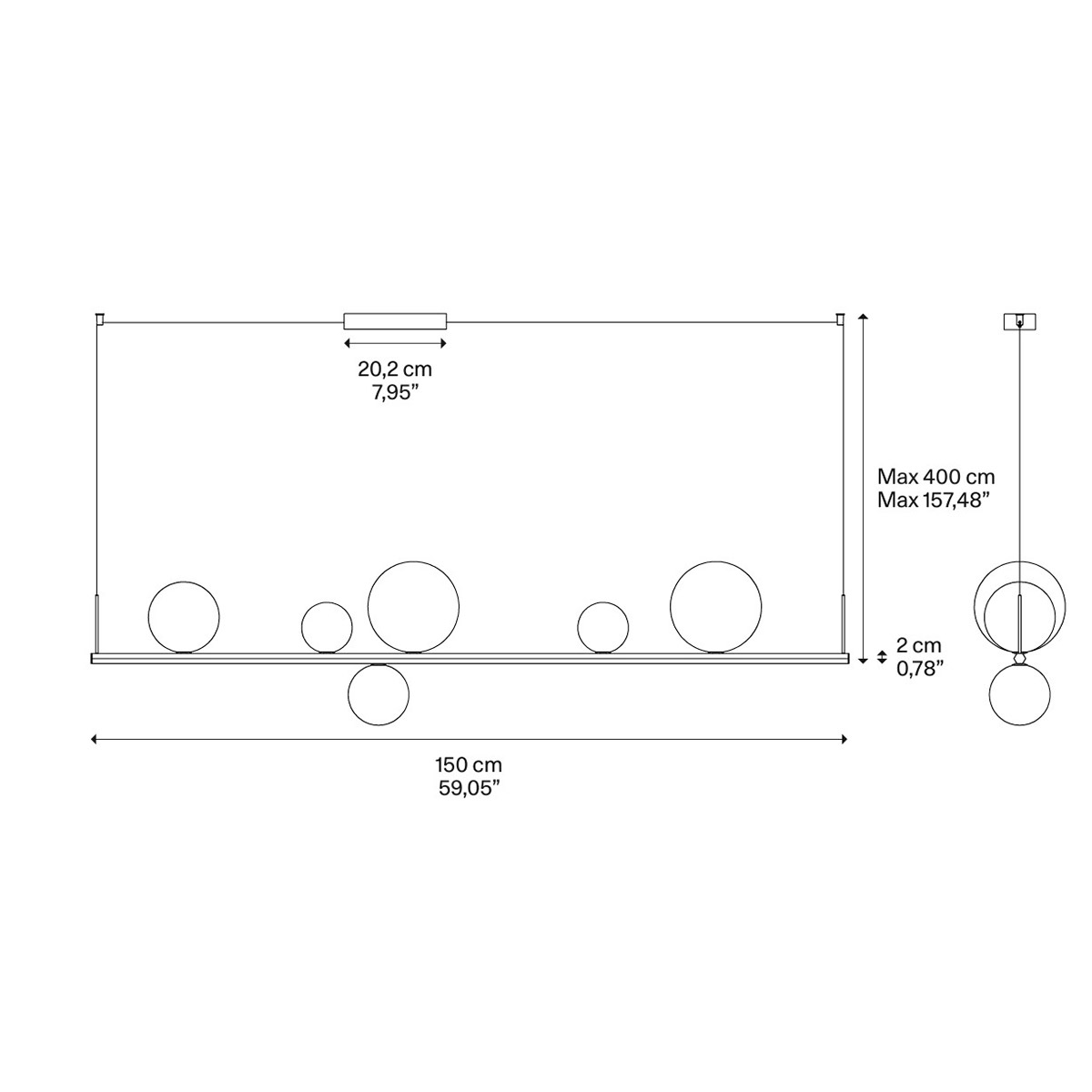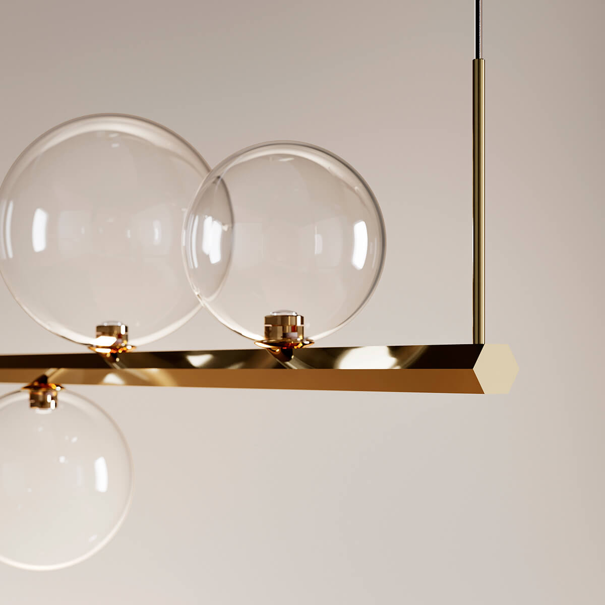 Die klare Formensprache des Random Stick wird durch eine durchdachte Beleuchtung ergänzt. Während die Glaskugeln ein weiches, diffuses Licht in den Raum strahlen, sorgen LEDs an der Unterseite des Stabes für eine gleichmäßige, direkte Beleuchtung. Diese Doppelfunktion macht die Pendelleuchte ideal für den Einsatz über Esstischen, Kücheninseln oder langen Theken.