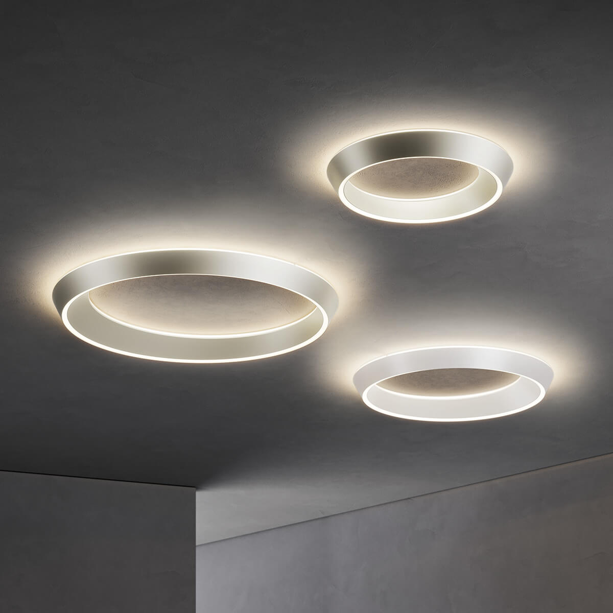 Die kompakte Form mit geringer Bauhöhe verbirgt alle technischen Elemente im Inneren und lenkt den Fokus ganz auf die fließende Ästhetik. Durch die gleichzeitige Lichtausstrahlung nach oben und unten entsteht ein harmonisches Zusammenspiel aus direkter und indirekter Beleuchtung – ideal, um Räume stimmungsvoll zu inszenieren.