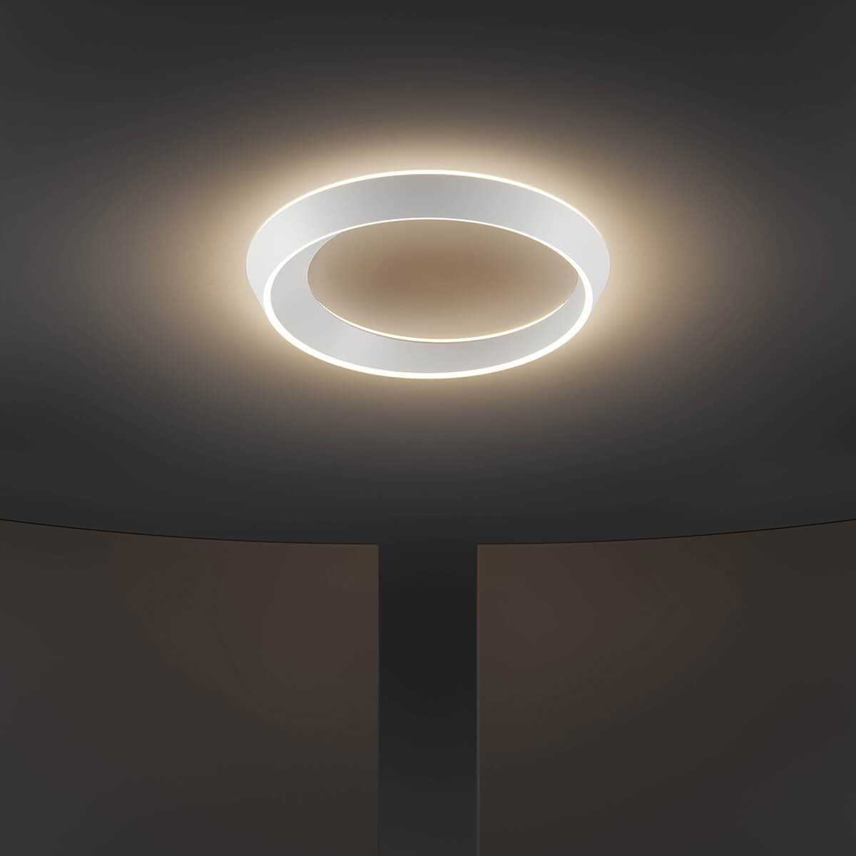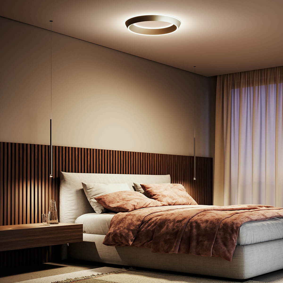 Gefertigt aus hochwertigem Aluminiumdruckguss, vereint Tidal Robustheit mit einem leichten, eleganten Erscheinungsbild. Die integrierte LED-Technik projiziert das Licht sowohl nach oben als auch nach unten, wodurch die Decke sanft erhellt und der darunterliegende Raum angenehm beleuchtet wird. Der geschlossene Ring verbirgt alle technischen Elemente diskret im Inneren und betont so die fließende, harmonische Form der Leuchte.